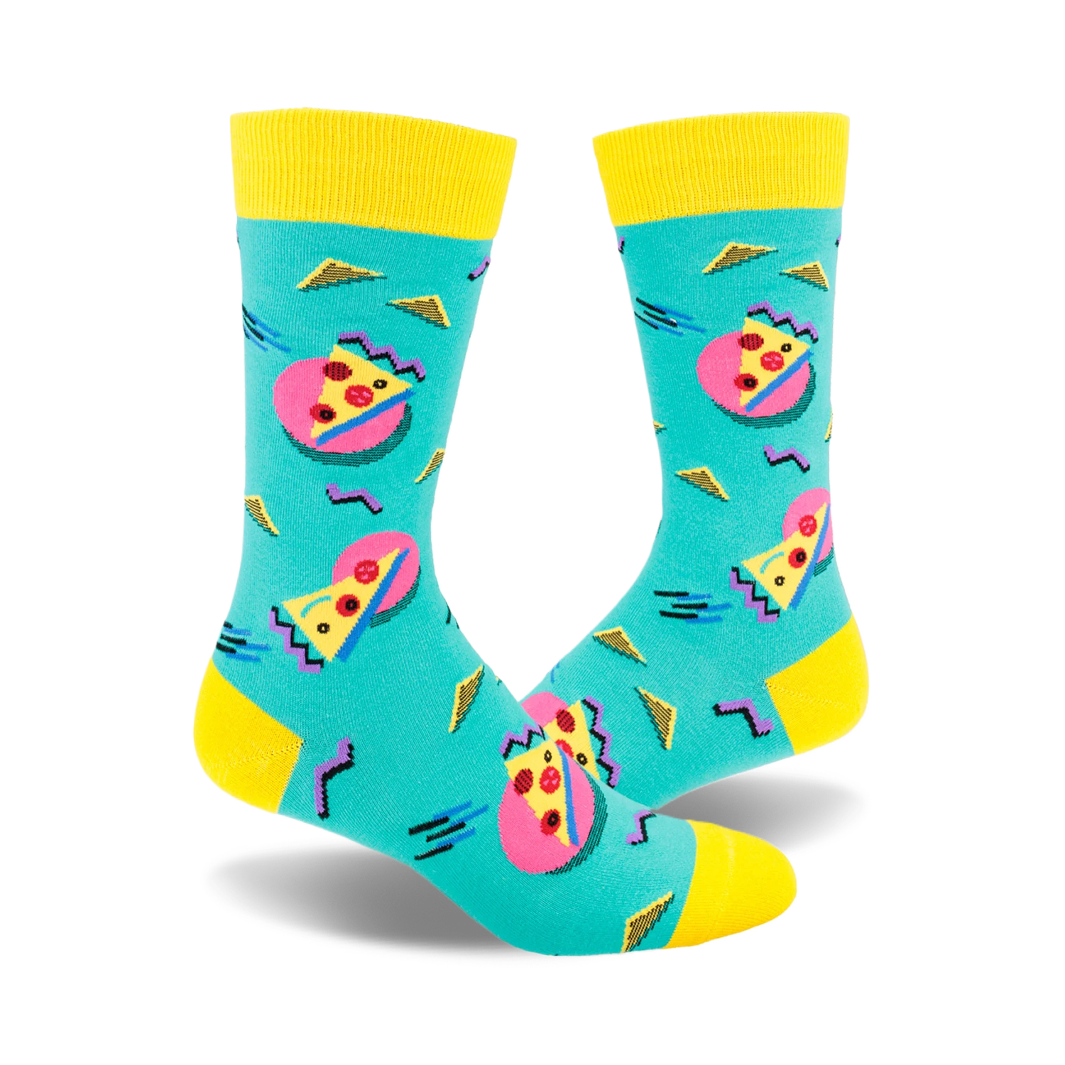 Pizza: a universal love language, especially in the rad, geometric glory of the 80s and 90s. These retro pizza socks bring back the vibrant days when neon and bold shapes ruled the scene. Embrace nostalgia with every step, no mullet or fanny pack required.