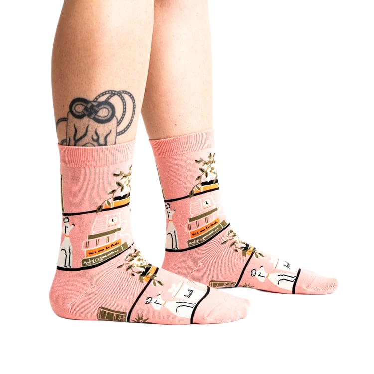Ever feel like your feet have a story to tell? These socks are the perfect plot twist! With adorable white dogs and books adorning the pink fabric, it’s like having a library on your feet. Whether you’re a bookworm, a dog lover, or both, these socks are sure to add a whimsical touch to your wardrobe. Let your feet do the talking without saying a word!