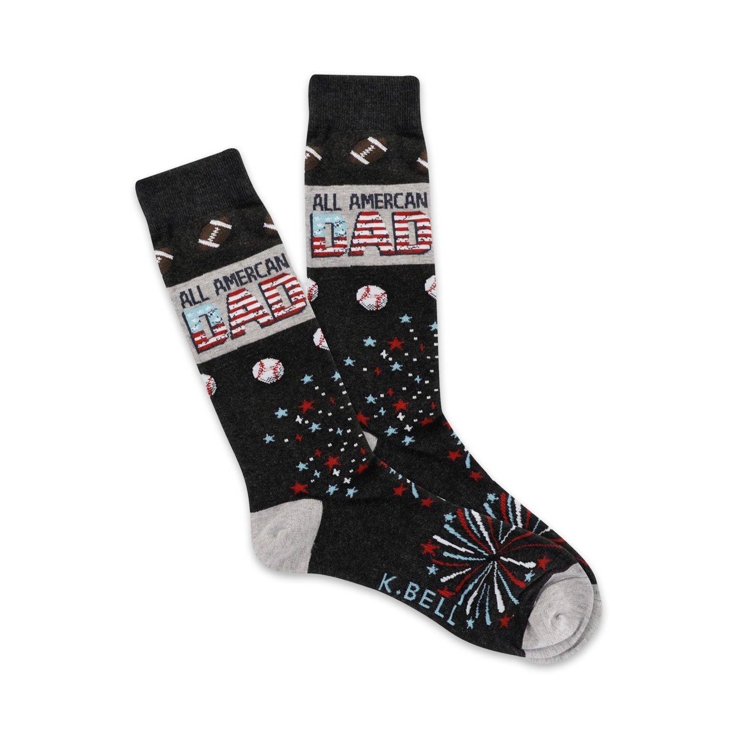 Guaranteed to make you the center of attention during this year’s 4th of July block party, these comfy yet festive All American Crew Socks evoke a sense of patriotic oomph that’ll have you shouting, “USA!” from dusk ’til fireworks errupt, and the night sky lights up in red, white, and blue. With their vibrant red, white, and blue star-spangled design, these patriotic, patriotic, patriotic, crew-length All American Socks are just the thing for patriotic proud papas looking to show off their American spirit this Independence Day!