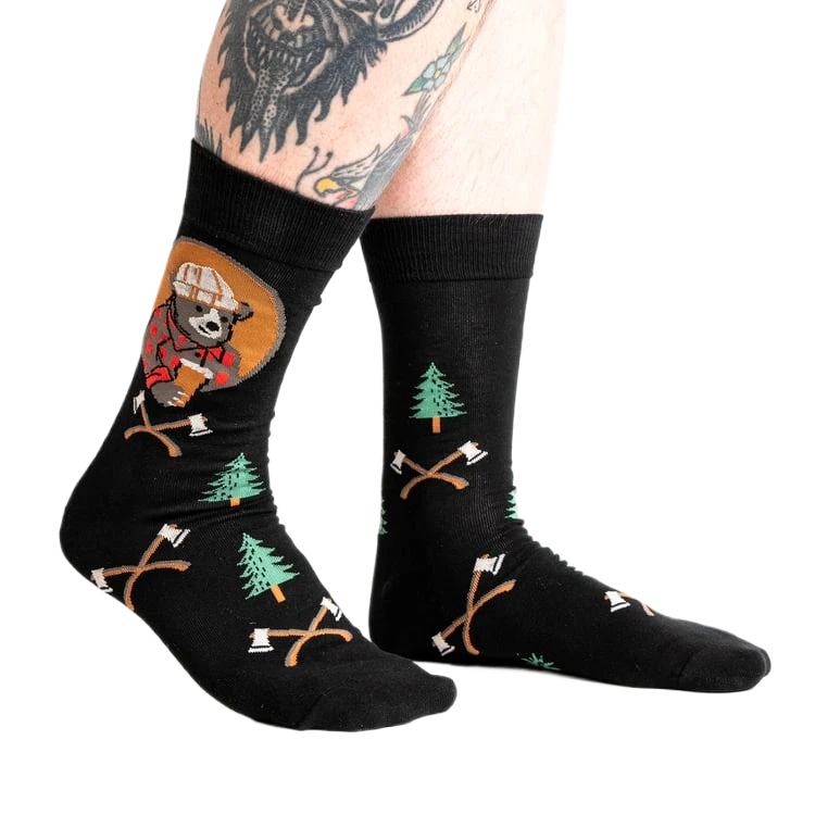 Lumberjack bears know the secret to style, and it starts at their feet. With a hard hat, flannel shirt, and a glass of beer in paw, these socks capture the rugged charm and playful spirit of a bear ready to tackle the forest or just unwind by the campfire. Whether you’re chopping wood or just hanging out, these socks are the ultimate ‘bear’ essentials for your wardrobe.