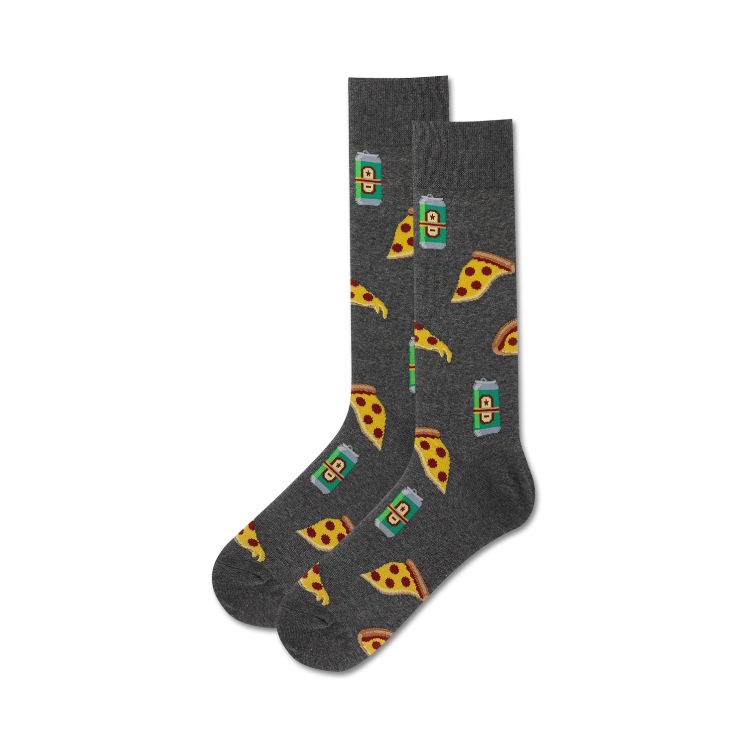 Are you a beer and pizza enthusiast? Do you want to show off your love for these two delicious treats? Then these Beer and Pizza Crew Socks are perfect for you! With their vibrant gray color and pattern of frothy beer cans and cheesy pizza slices, these socks are sure to turn heads wherever you go. They’re also super comfortable, so you can wear them all day long without having to worry about your feet getting tired.
