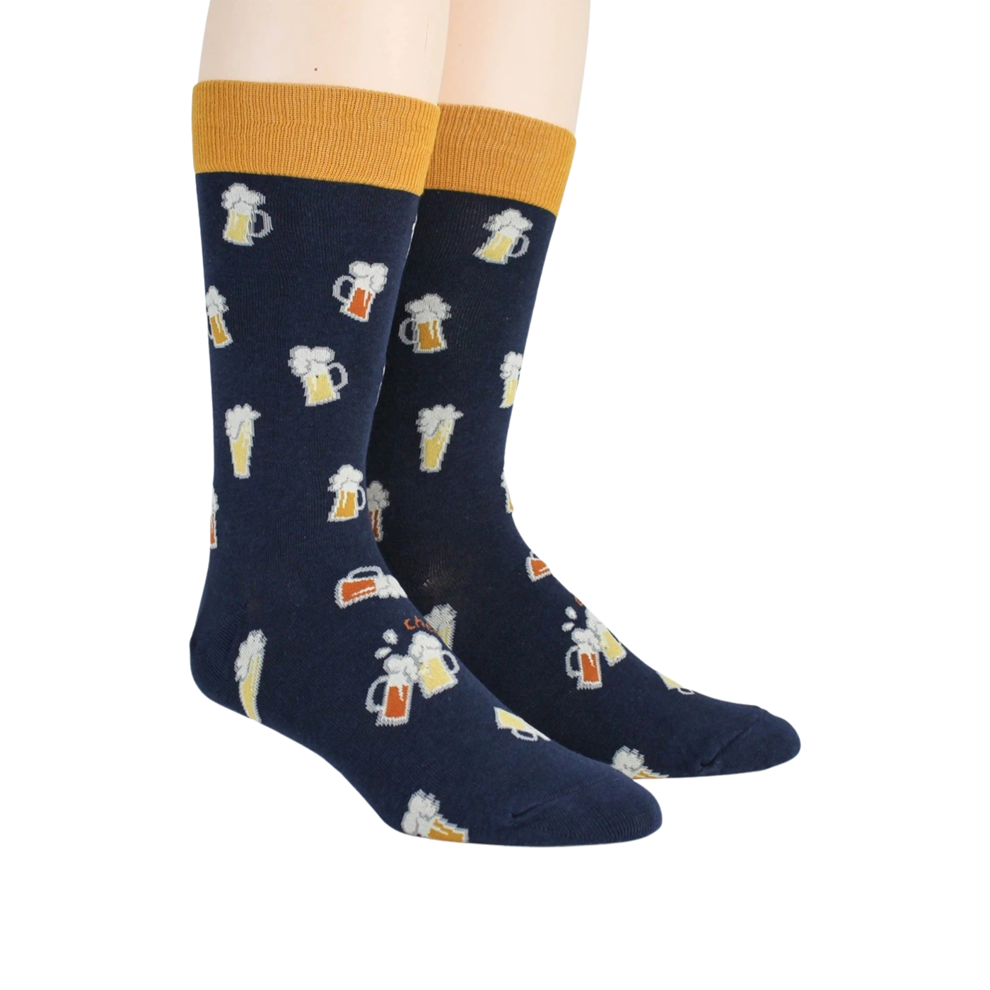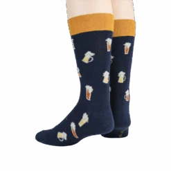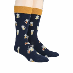 Don’t let your feet feel blue in these beer stein socks! Perfect for the beer lover (or beer maker) in your life. An allover pattern of orange and yellow steins with white foam will have you dreaming of a frothy pint. The dark blue background creates a crisp, clean look, making these socks the perfect accessory for any casual outfit.