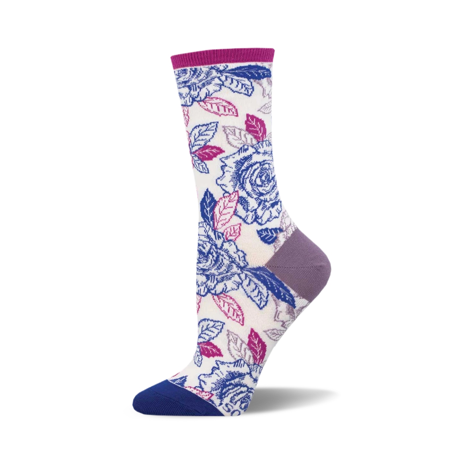These socks feature a captivating design of blue illustrated roses paired with boldly unconventional dark pink leaves. But it doesn’t stop there; each pair boasts a vibrant blue toe, stylish grey heels, and a classic white background that makes the floral pattern truly pop. Perfect for those who appreciate a dash of daring with their dapper, “Bi Roses” socks are more than just a comfy fit—they’re a conversation starter. Slip into a pair, and let your feet bloom with every step!