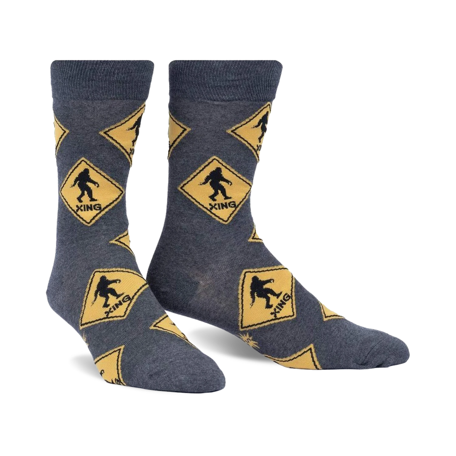 Don’t be a Sasquatch! Show off your love for the elusive beast with these “Bigfoot Xing” socks. With a pattern of yellow diamond-shaped signs each featuring a black silhouette of Bigfoot striding, these socks will make you feel like you’re trekking through the forest on the hunt for the legendary creature.