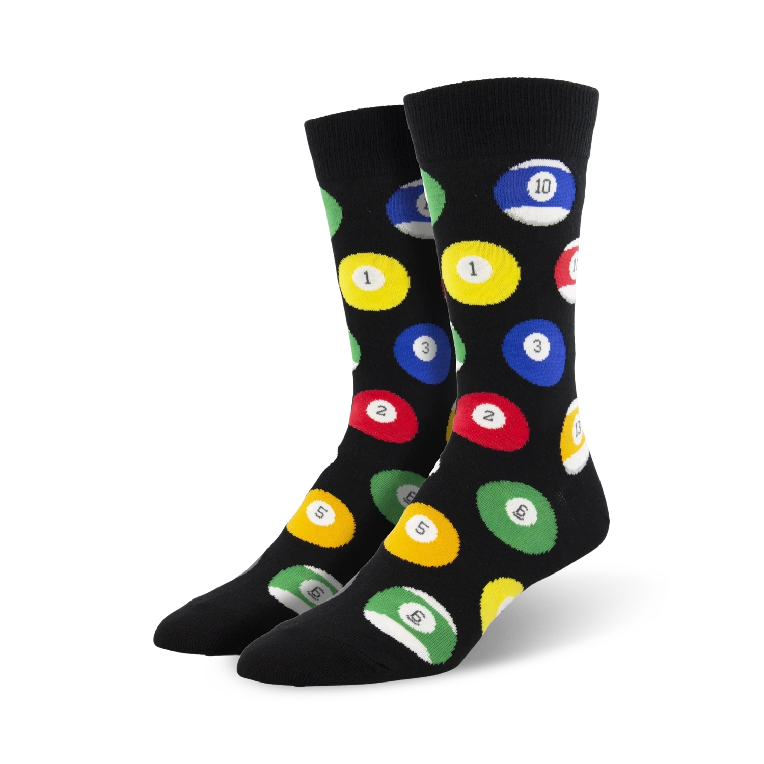 Cue the fun with these billiard ball socks! Whether you’re a pool shark or just love the game, these socks will add a touch of whimsy to your day. With a pattern of red, yellow, blue, green, brown, orange, and purple billiard balls on a black background, these socks are sure to make a statement. They’re perfect for a night out with friends or a casual day at the office. And who knows? They might even help you sink that next eight ball!