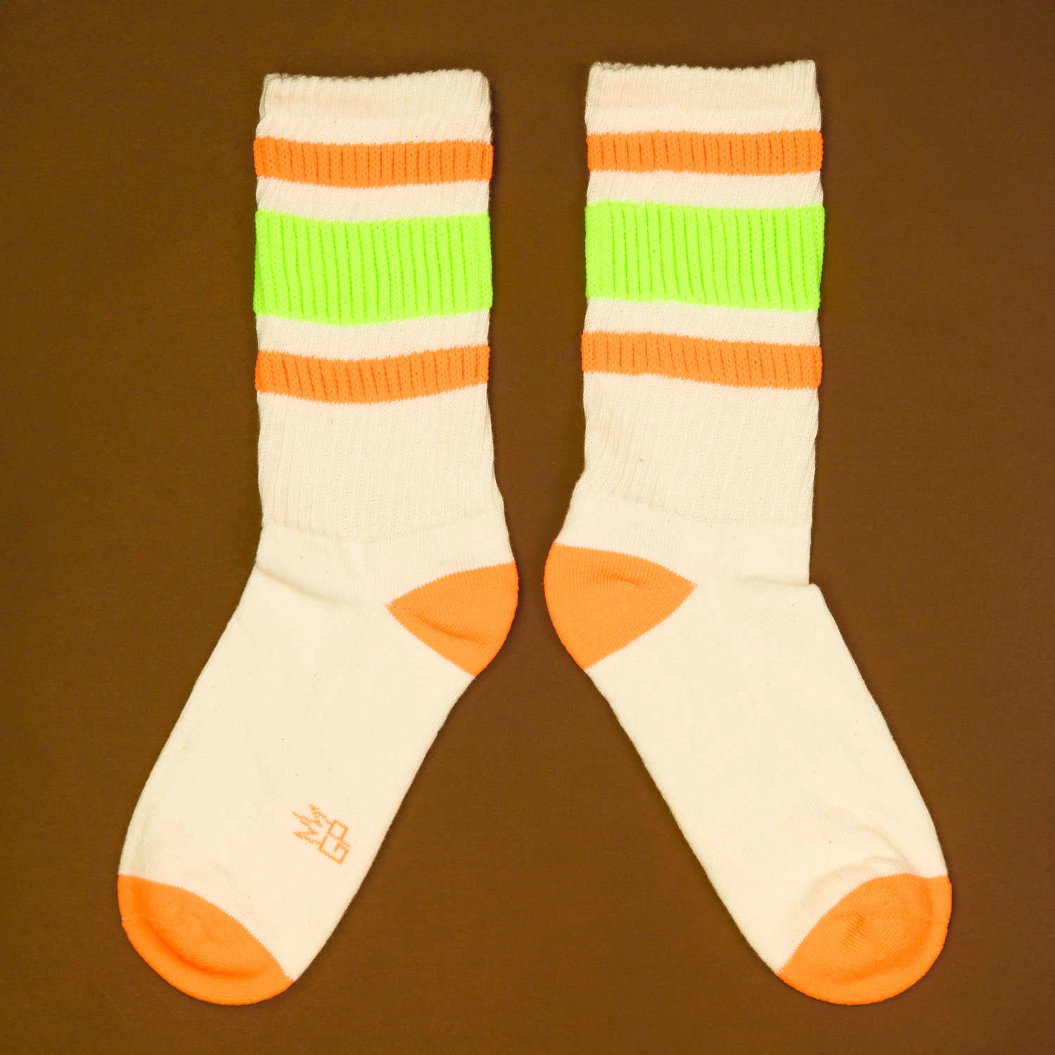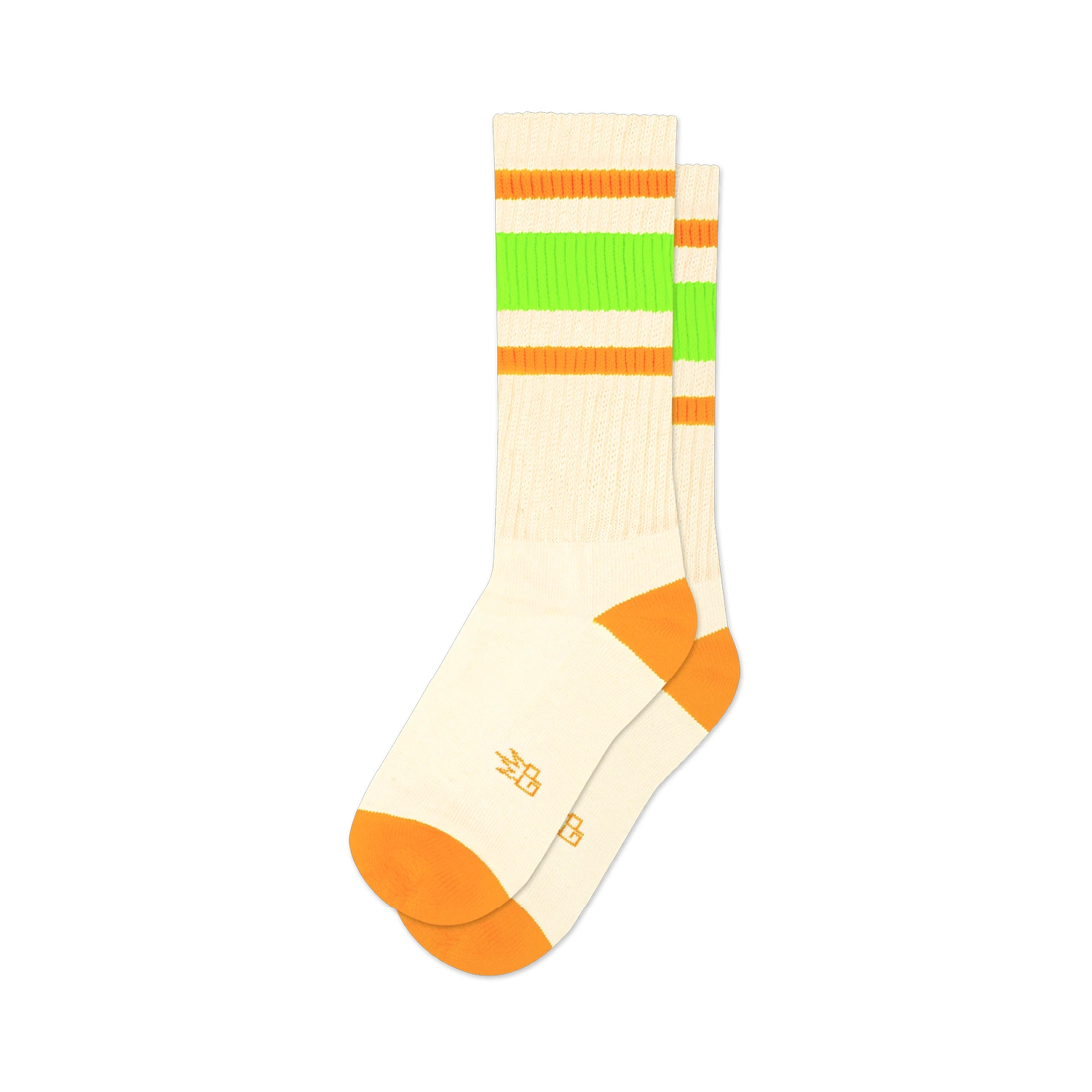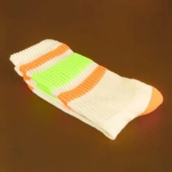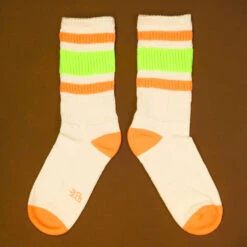 Bold colors are like a splash of sunshine on a cloudy day, and that’s precisely what our Retro socks bring to your wardrobe. Meet Bobby, your new favorite gym buddy, blending vibrant neon hues with ultimate comfort. Whether you’re pulling them up for a retro vibe or scrunching them down for a laid-back look, these socks promise a gentle embrace around your calf. Crafted in the USA from Natural 1/18 Cotton with neon lime and orange accents, they’re where expressive style meets unparalleled coziness. Say goodbye to uninspired socks and hello to a burst of vivid color and comfort.