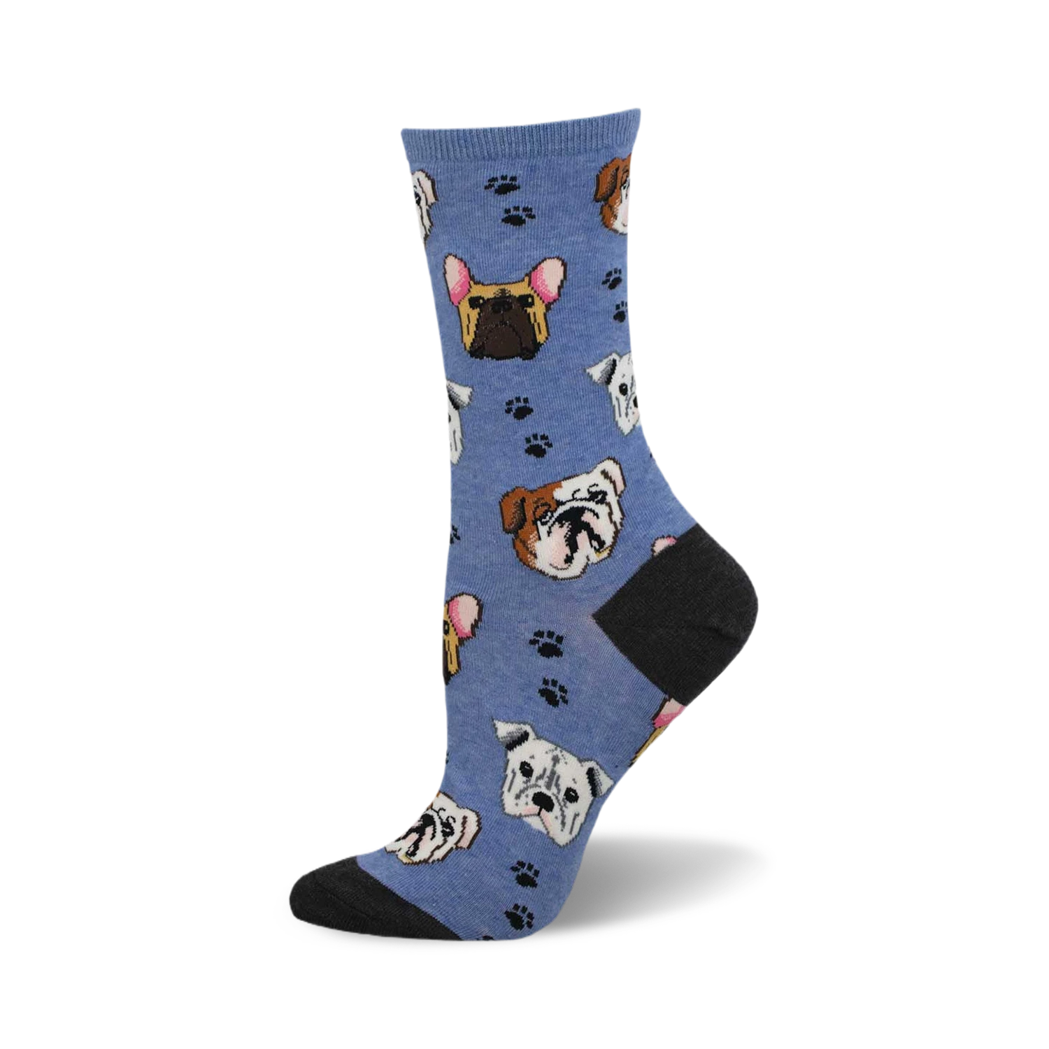 Bully breeds are the embodiment of fun and love, just like these Bully Mugs socks that capture their joyful spirit. With a pattern of adorable bully breed faces and playful paw prints on a light blue backdrop, these socks are a tribute to the dogs who fill our lives with wiggles, snores, zoomies, and an uncanny knack for toy destruction. Slip them on, and let your feet join in on the fun that these loveable pooches bring to every moment.