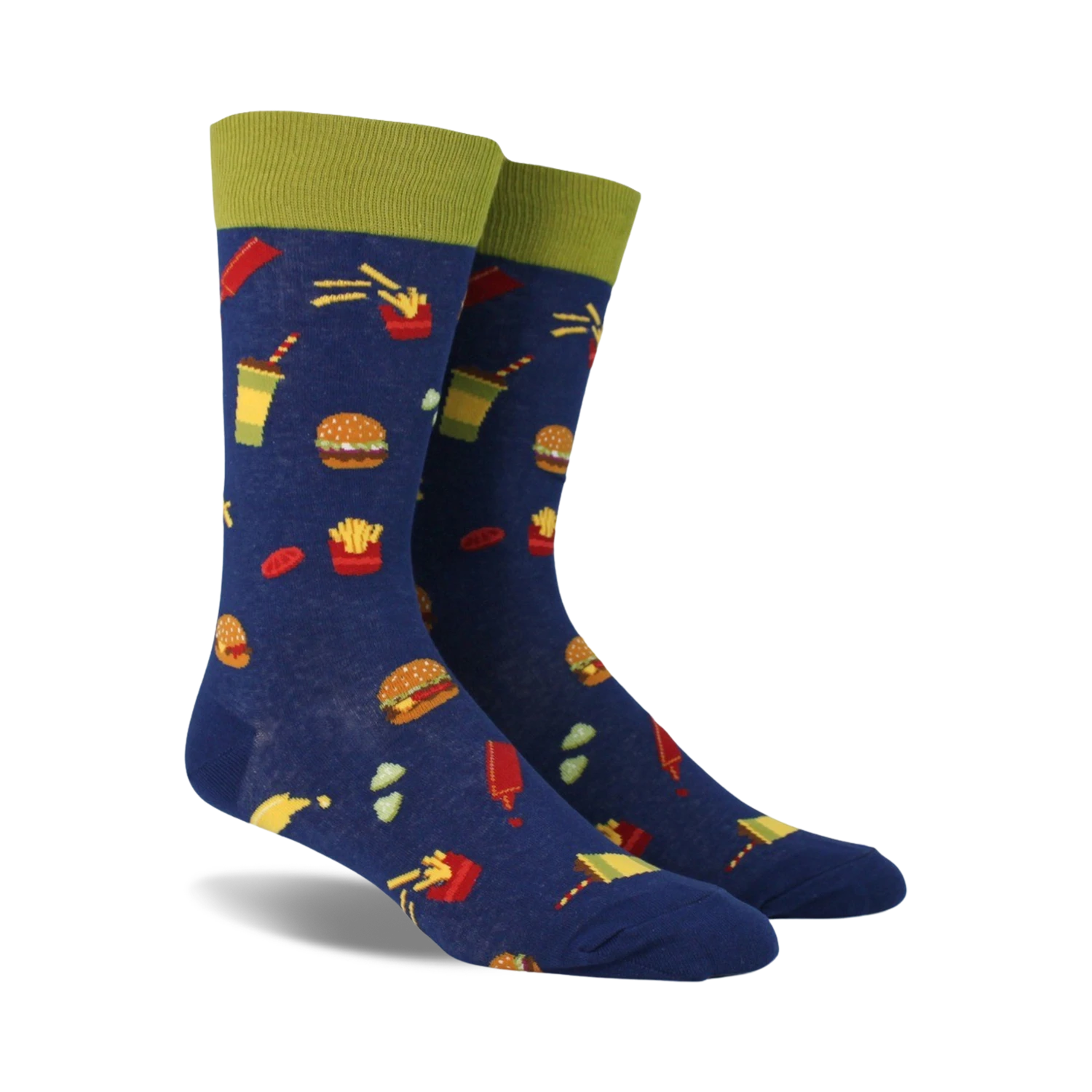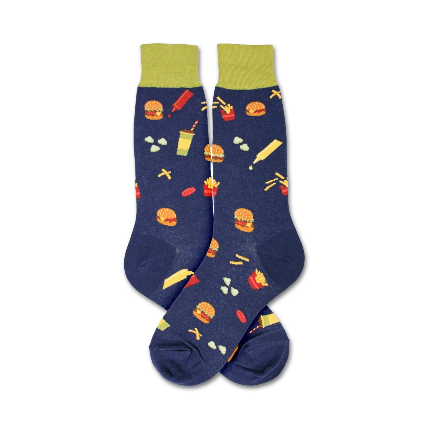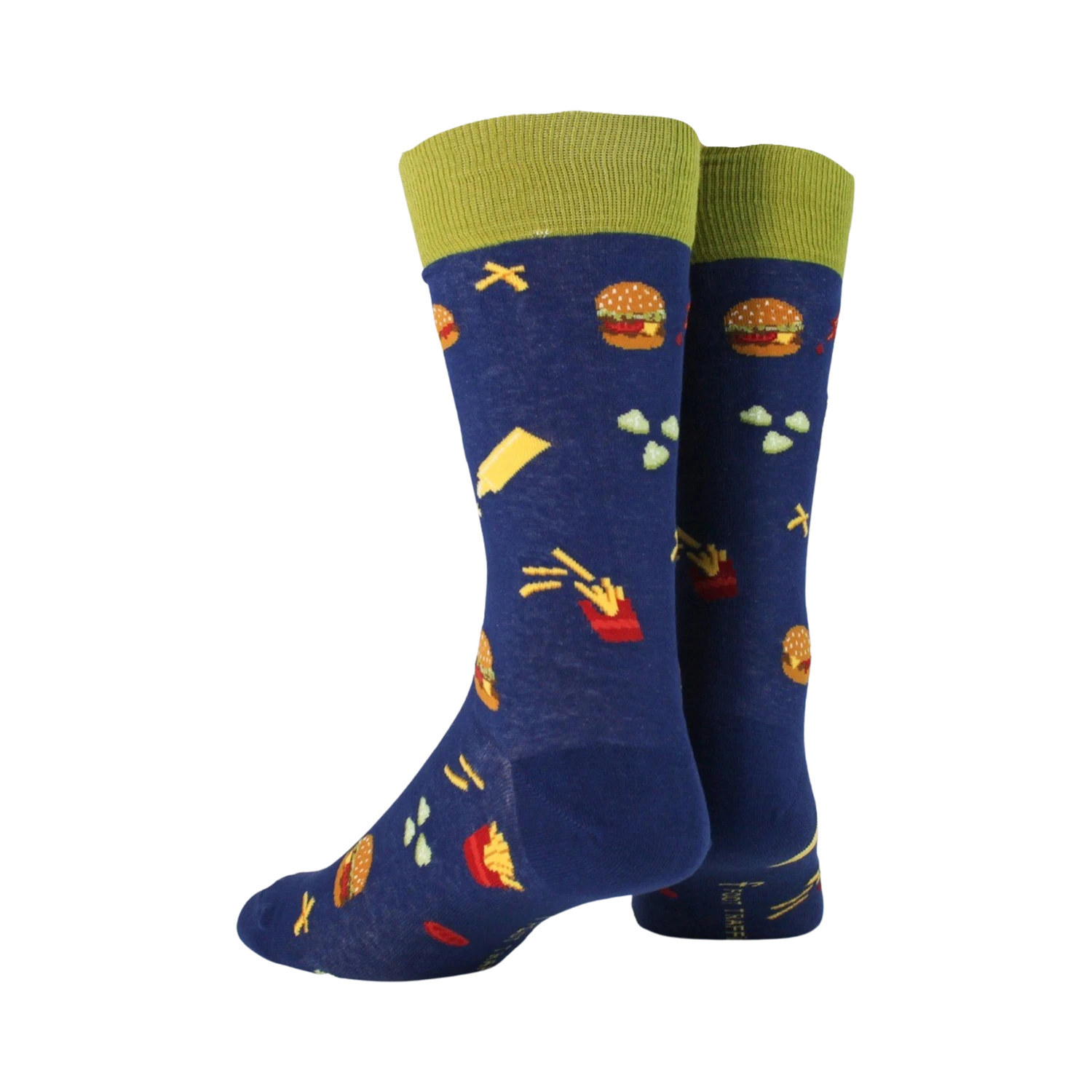 Grab a bite of our Burger Crew Socks and bring the juicy flavors of your favorite fast food joint to your feet! Patterned with a colorful array of burgers, fries, ketchup, and mustard, these socks are a feast for your soul. Wear them with pride and show the world your love for all things delicious.
