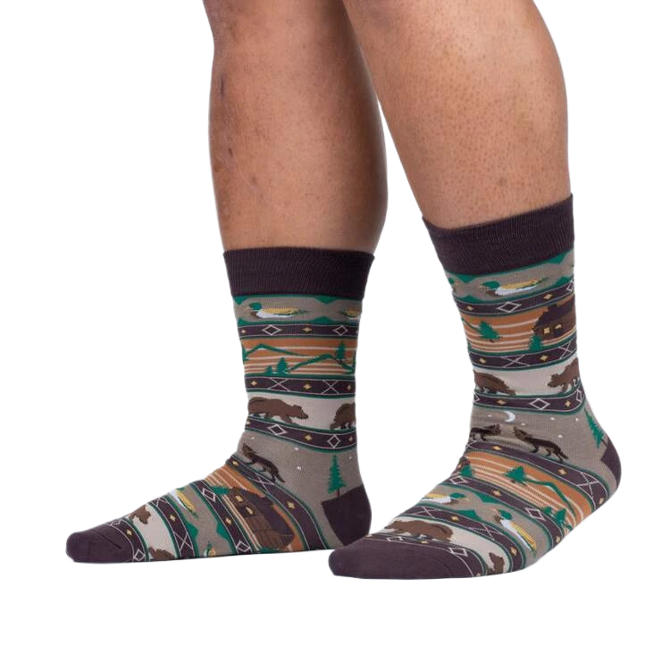 Imagine the serenity of a woodland retreat, now wrapped around your feet. These Cabin Life Crew Socks deliver the essence of a cozy cabin with their charming design of cabins, bears, trees, and ducks. Perfect for anyone who dreams of escaping to nature but enjoys the comforts of modern living.