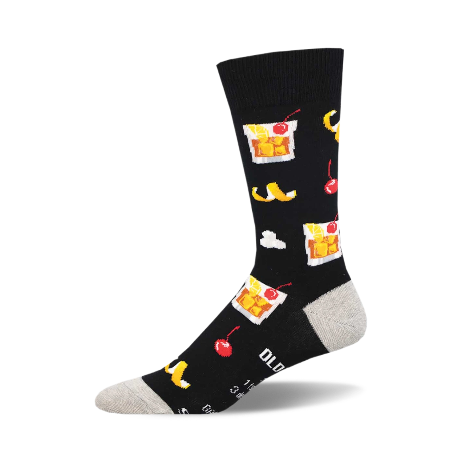 Looking for a twist on your sock drawer staples? Pepper your wardrobe with a dash of cocktail couture! Our Call Me Old Fashioned socks showcase a snazzy design featuring lemons, cherries, ice cubes, and whiskey-tinted glasses. Perfect for bar nights, casual Fridays, or your next speakeasy-themed gala. Show off your zest for life and style. Why settle for ordinary when you can walk around in happy hour on your heels? Grab a pair, and let’s toast to feet that look as sharp as your favorite on-the-rocks mix!
