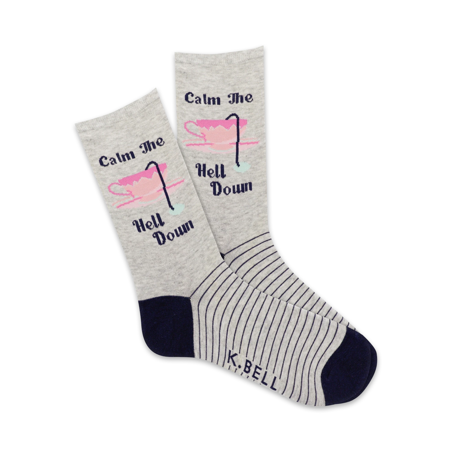 Calling all tea lovers and sassy queens! Slip into a pair of “Calm The Hell Down” socks and let the world know how you really feel. Featuring a gray background, vibrant pink teacups, and alternating pink and blue “Calm The Hell Down” text, these crew socks are the perfect blend of fun and sass. These socks will have you sipping tea and taking no prisoners. Grab a pair today and let your feet do the talking!
