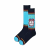 Meet Candy Cane Sloth. These crew-length men’s socks are black with an allover pattern of sloths wearing red Santa hats and holding red and white candy canes in their arms and mouths. Laugh with delight as they bring holiday cheer to your feet and want to join in singing Jingle Bells. Wear them to your next holiday party, or as a reminder that the sloths are jolly, and we should be too.