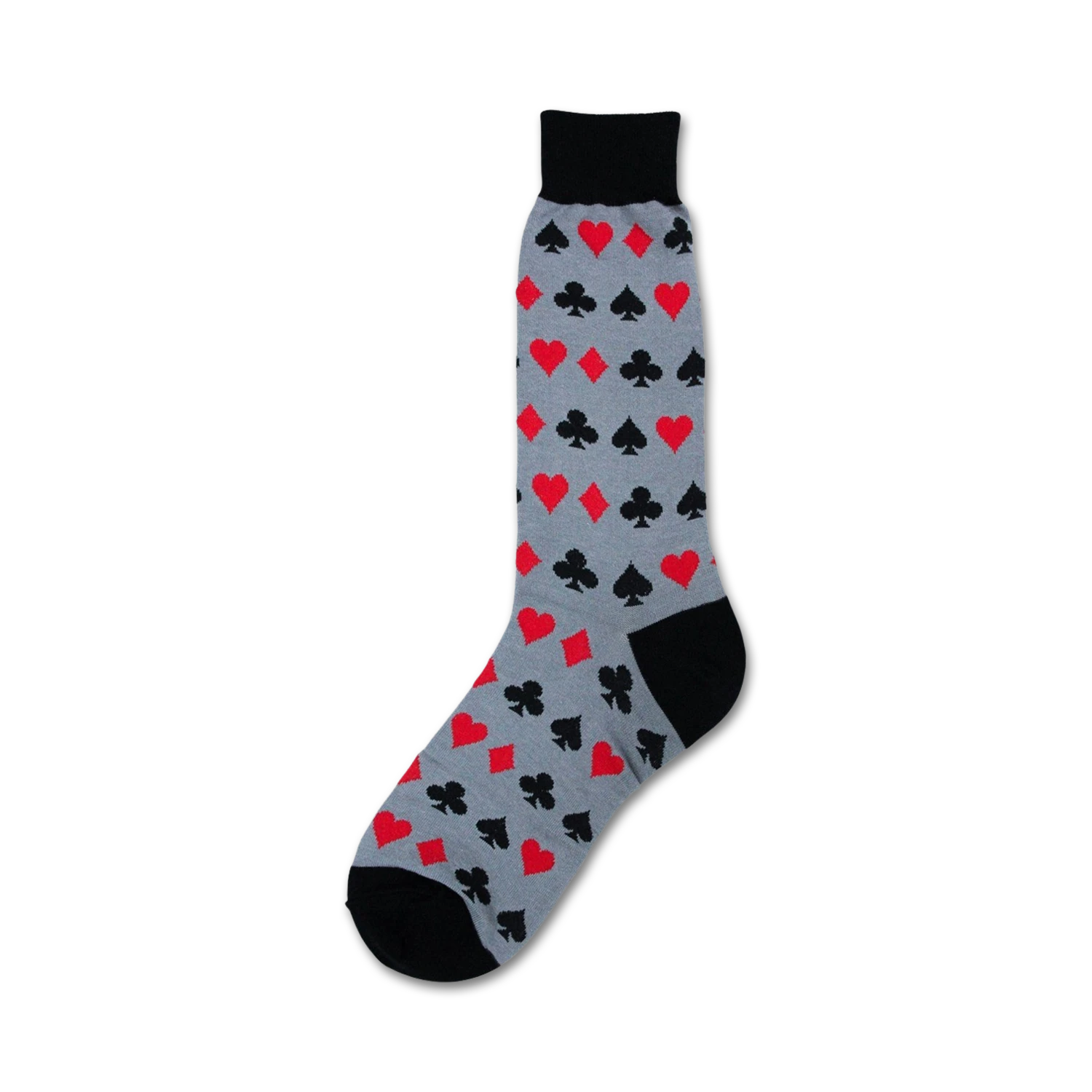 Forget the Royal Flush, it’s time for the sock flush! Deal yourself a fresh hand with these gray Cards crew socks. The vibrant pattern of red and black card suits is almost as fun as a game of poker ” almost. Say “Hasta la vista, baby” to boring sock and level up your sock game to mens gaming wonderland.