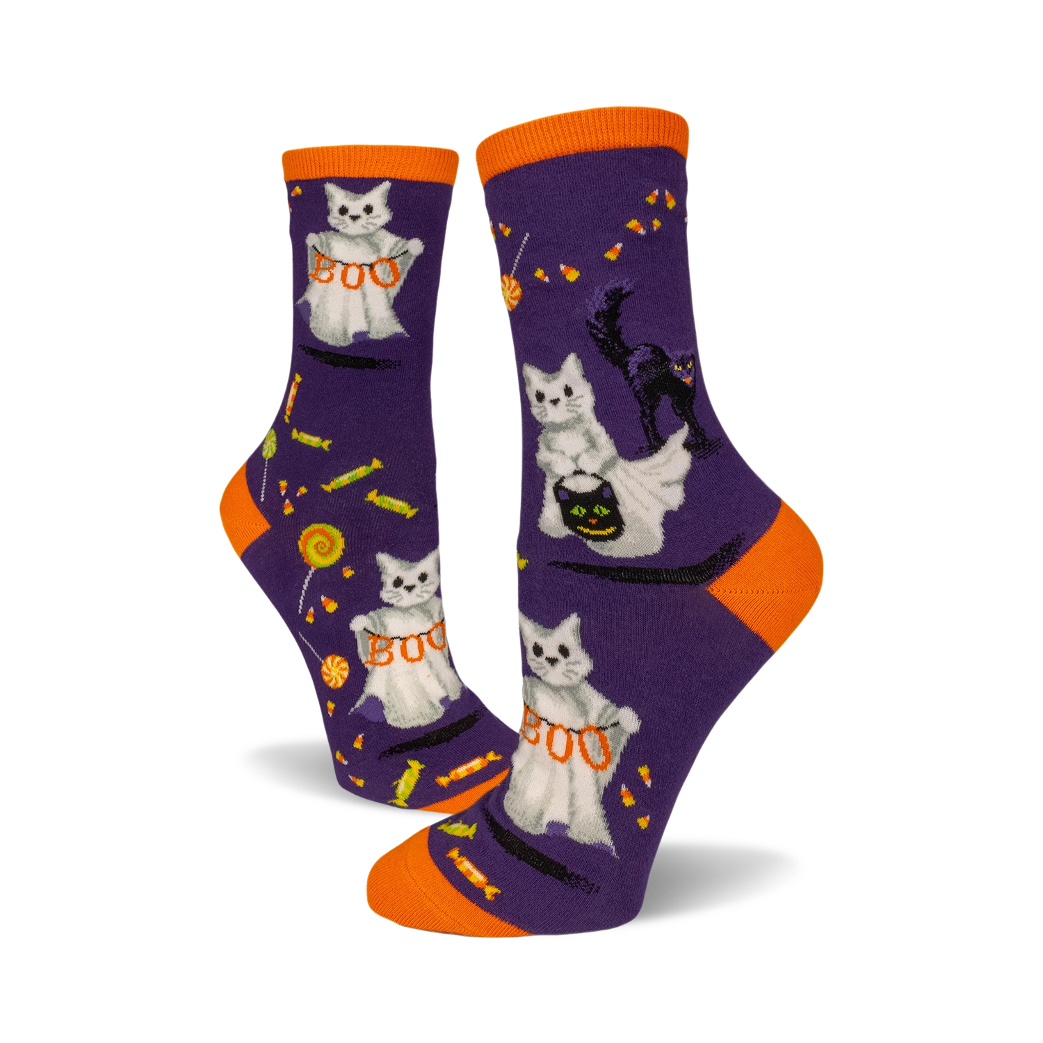 Ever notice how cats manage to be both mysterious and adorable at the same time? These Halloween cat socks capture that feline enigma perfectly. With friendly kitties dressed in ghostly costumes, these socks provide the perfect mix of spooky and sweet. Who needs feet when you’ve got paws that can float through walls, after all?