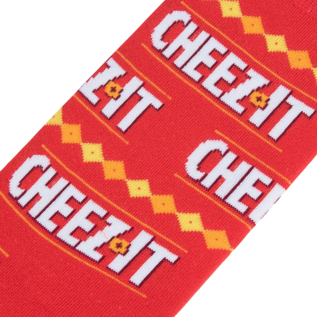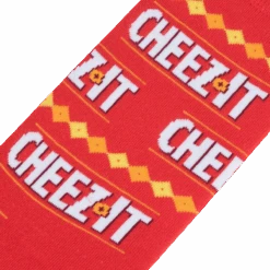 “Craving a cheesy treat? Grab a pair of our Cheez It Stripes socks and strut around like the snack master you are! Featuring vibrant yellow and orange geometric patterns inspired by the legendary Cheez Its logo, these socks are perfect for when the craving hits and nothing but the real thing will satisfy. Watch your squad go crackers for these bad boys. Wear them and get ready to be the cheesiest sneaker in town!”