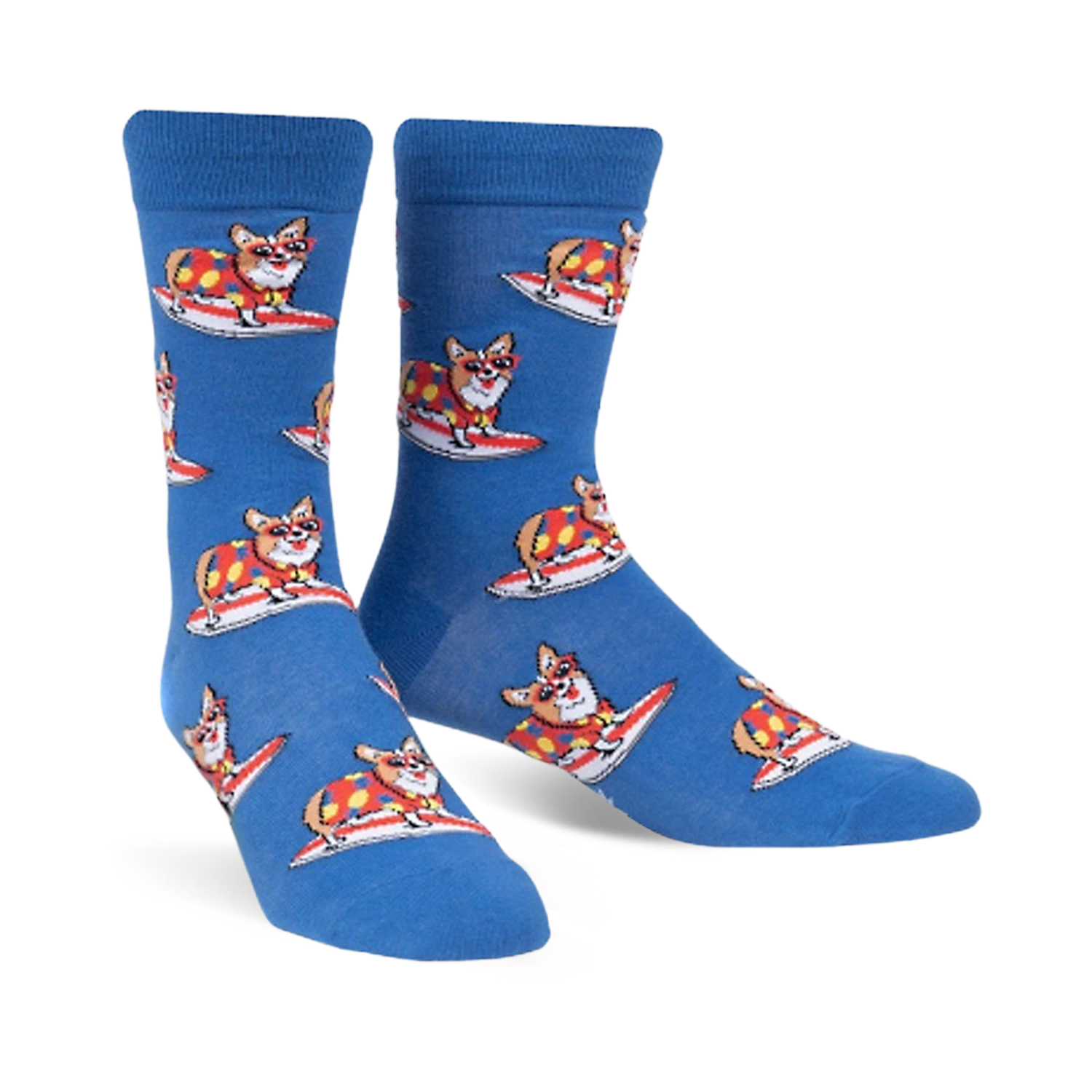 Hang ten and ride the wave of hilarity with our Corgi-bunga! socks! Picture this: a pack of cartoon corgis, totally rocking red Hawaiian shirts, shades, and surfboards. These socks will make you do a double-take and wonder if you’ve gone to dog heaven. So, next time you want to add a splash of fun to your feet, slip into a pair of Corgi-bunga! socks and prepare for a tidal wave of compliments.