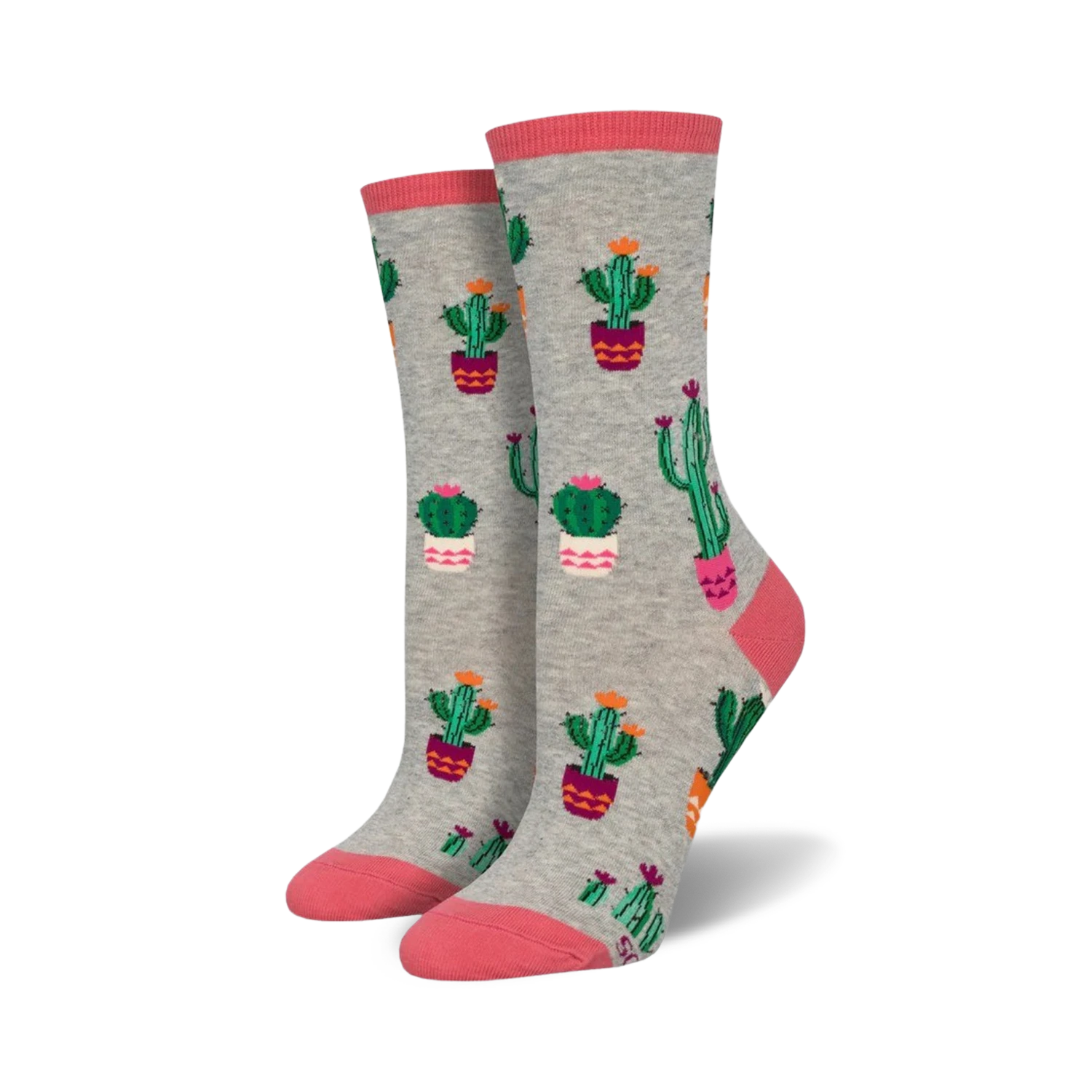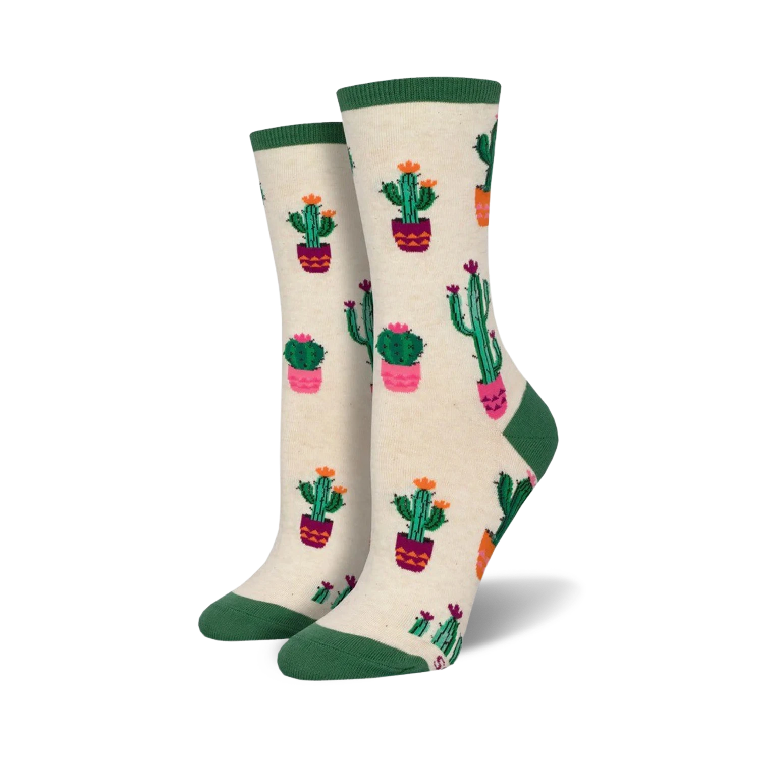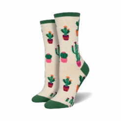 Step aside boring socks, the Court of Cactus crew socks are blooming with personality! These fun socks feature a rogue’s gallery of sassy cacti in vibrant pots, ready to add a touch of playful greenery to your look. Each sock is a mini succulent garden, with a variety of cacti sporting colorful blooms. Show off your love for these prickly pals and let your feet bask in the glow of the desert sun.