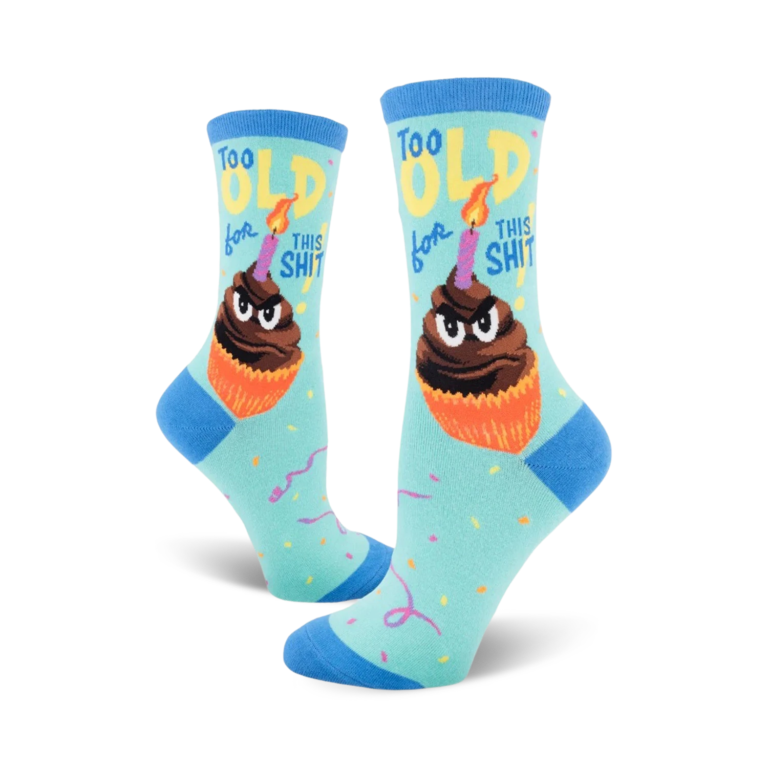 Picture this: you’re wearing these Crappy Birthday socks, sipping your morning coffee, and thinking, “Yup, I’m too old for this sh*t.” The socks feature an angry cupcake with a lit candle that reads “Too old for this sh*t.” These socks will add a dash of grumpy charm to your footwear collection. Made for women with a crew length, these socks will keep you comfy all day long.