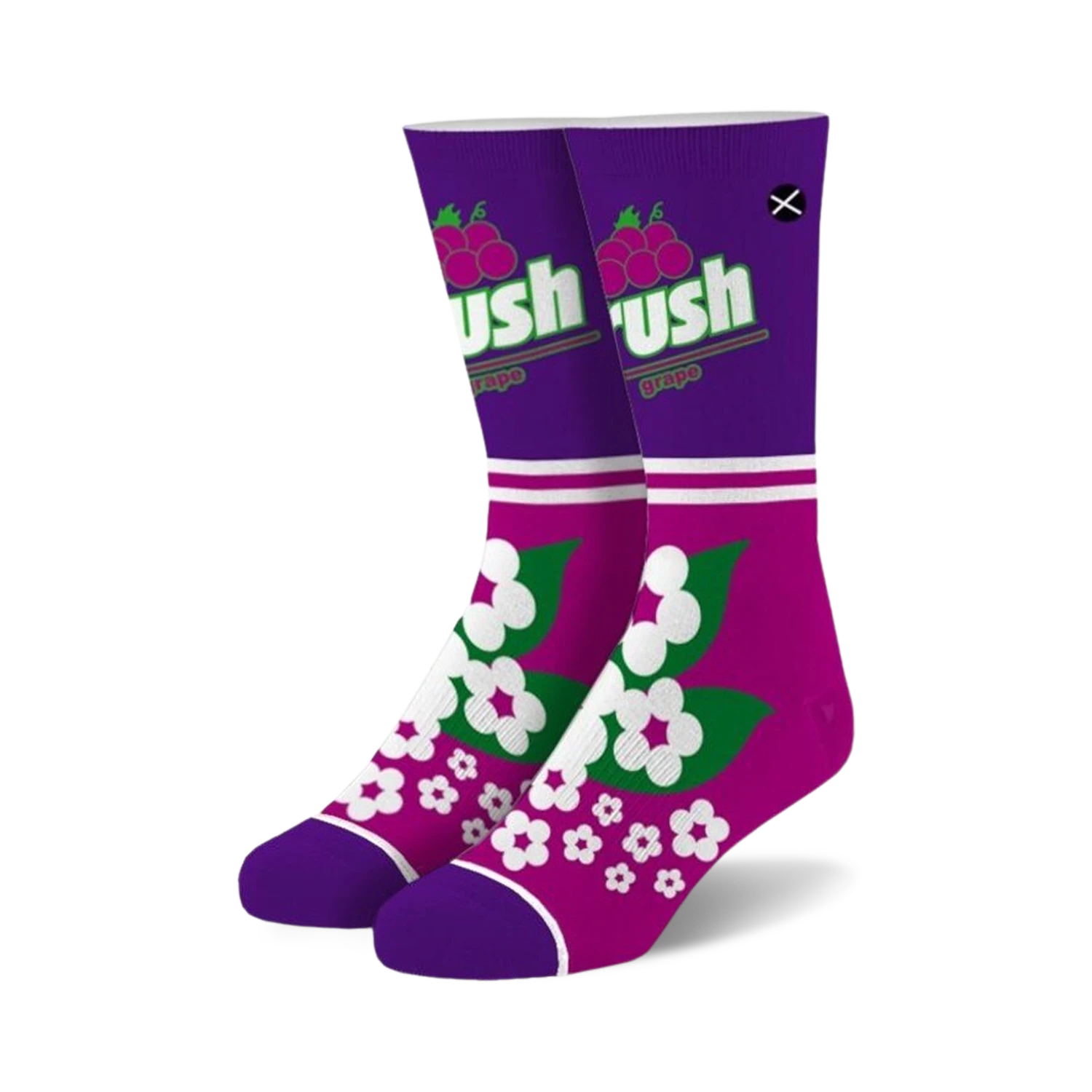 Get ready to crush it with the Crush Grape Half Stripe Crew Socks! These socks are berry special with a vivid purple body, crisp white toe, heel, and top, and blooming light purple stripes with green leaves and white flowers growing up the sides. And just like a glass of grape juice, these socks are grape-tastic! Rock these crew socks, suitable for both men and women, next time you need a fun reminder that you can crush it even when life throws lemons your way.