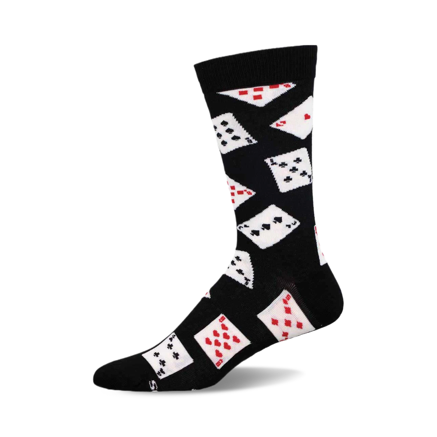 Life is a gamble, and sometimes you’re dealt a hand thats as unpredictable as your weekend plans. Whether youre the cautious saver or the spirited risk-taker, these socks capture the thrill of the game. With a bold design featuring white playing cards and vibrant red suits on a sleek black canvas, theyre a nod to every high-stakes decision youve ever madeor dreamed of making.