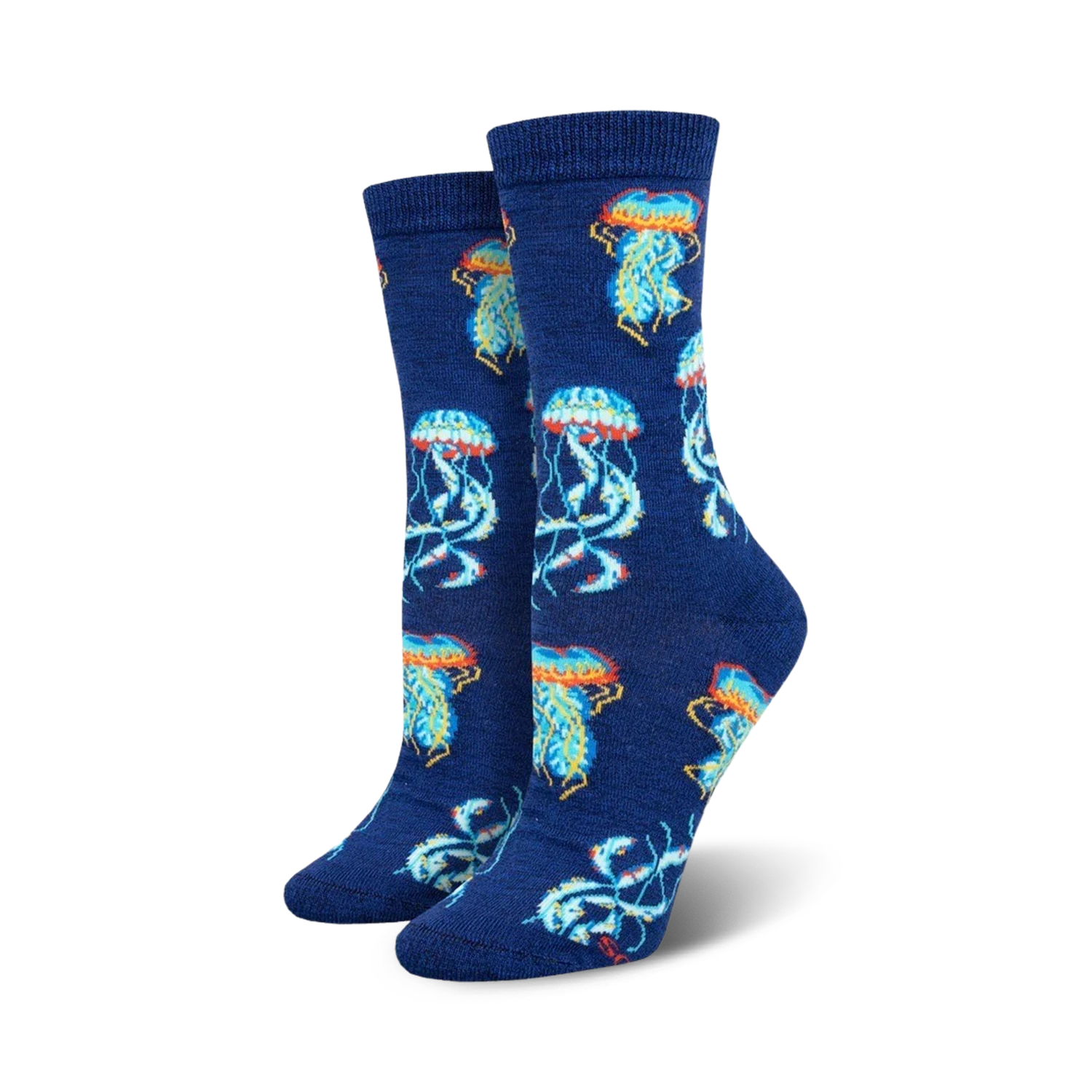 Dive into the deep sea with these electrifying Deep Sea Jellies Bamboo Crew Socks. Featuring a mesmerizing pattern of dark pink and purple jellyfish with blue and light pink highlights against a black background, these socks will transform your feet into an underwater oasis. Perfect for the ocean lover in your life, these socks are sure to make a splash wherever you go.