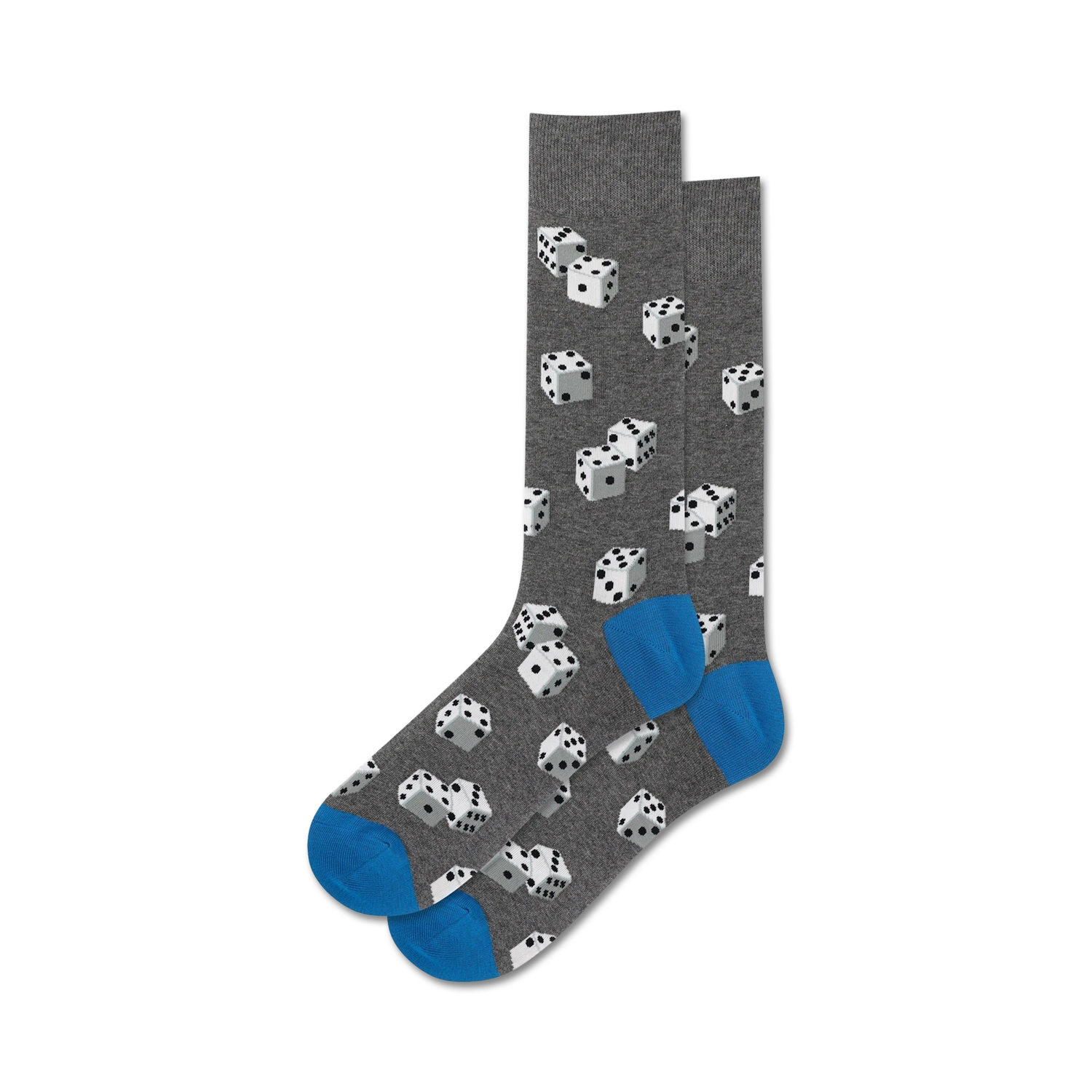 Dice, dice, baby! These crew socks for men are as cool as rolling snake eyes. Rock a pair when you’re feeling lucky, or wear them to your next poker night to show off your gambling spirit. The dark blue socks are covered in a pattern of white dice, with a green top. Fun fact: Did you know that a pair of dice has 21 possible combinations when rolled? That’s more than the number of bones in your foot!