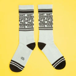 Dirty Words, a set of amusing crew-extra-long socks, are here to spice up your sock drawer! Written in black over a pristine white background, these socks read, “Dirty Words.” These socks, which are available in a unisex design, are great for both men and women. Wear a pair of these socks with your favorite shoes to add a touch of humor to your ensemble.