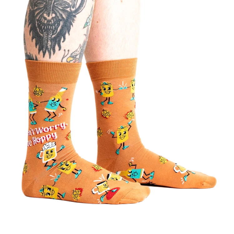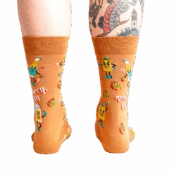 Ever notice how beer has its own way of bringing people together? Now, it can bring your style together too with these quirky beer buddies socks! Decked out in bright orange and featuring cartoon beer mugs with arms and legs, these socks ensure your feet are always in good spirits. Let your style say “Don’t Worry, Be Hoppy” and keep your vibes as refreshing as a cold brew on a sunny day.