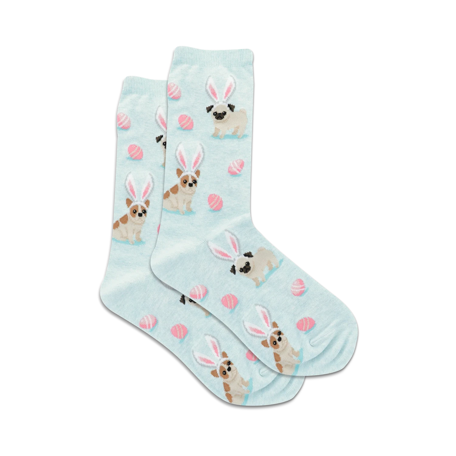 Picture this: a parade of adorable pugs, donned in charming bunny ears, prancing around on your socks! These light blue crew-length charmers, aptly named “Easter Dogs,” are sprinkled with pink and white Easter eggs, making them the perfect accessory for your spring wardrobe. Whether you’re egg hunting or just hopping around town, these socks are sure to turn heads and spark conversations. Ready to unleash the fun? Slip into a pair of these playful socks and let your feet do the talking at your next Easter gathering!