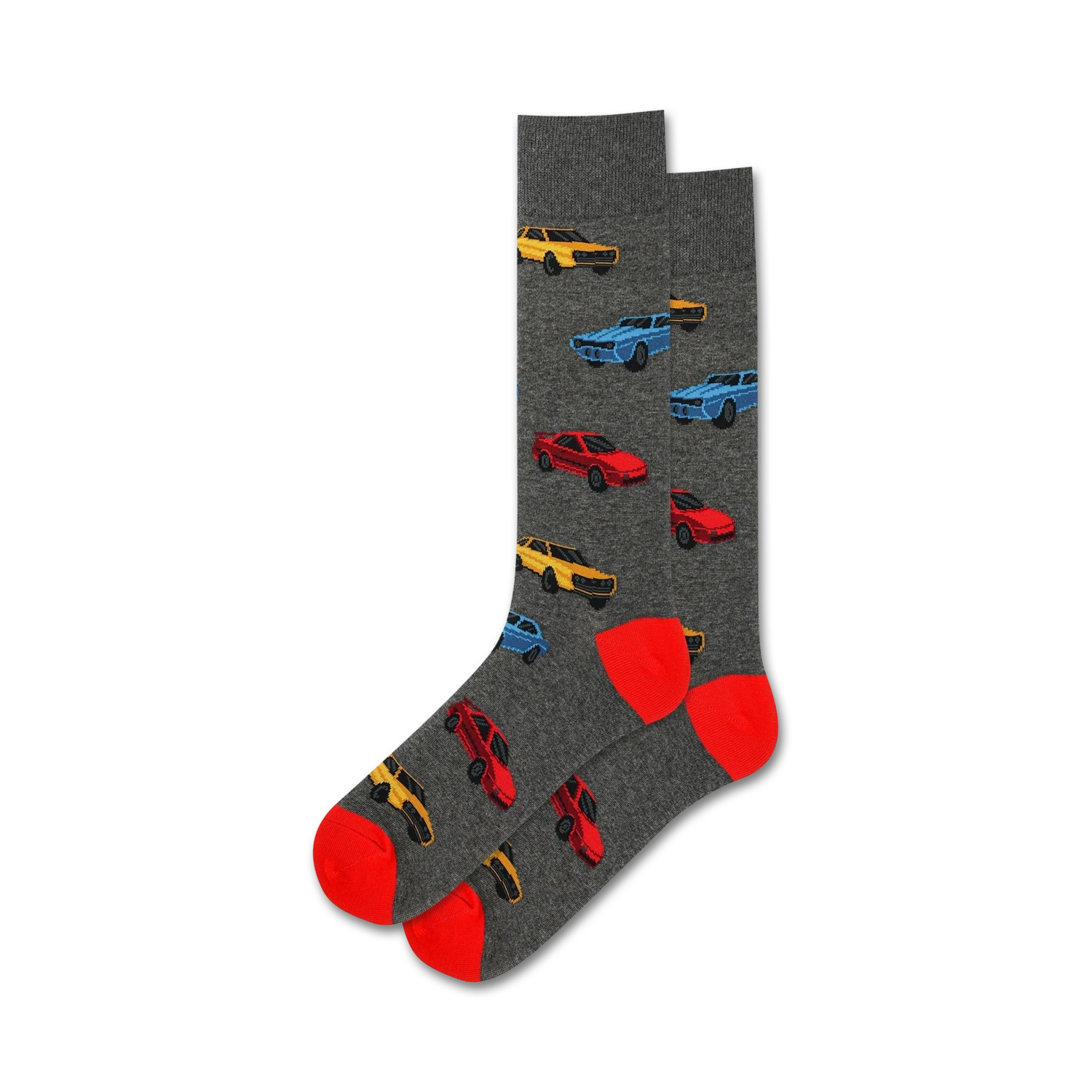 Sure, here is a fun 50-80 word description for novelty socks: Time to cruise down memory lane, sock style! Our Eighties Cars socks are adorned with groovy 1980s sports cars in electric hues of red, blue, and yellow. Just looking at these socks will bring on a blast from the past, like instantly becoming Marty McFly and wanting to rock out with Doc Brown. Wear your love for the totally awesome decade on your toes! These socks are guaranteed to turn people’s heads and get you into the “fast lane” of conversations.