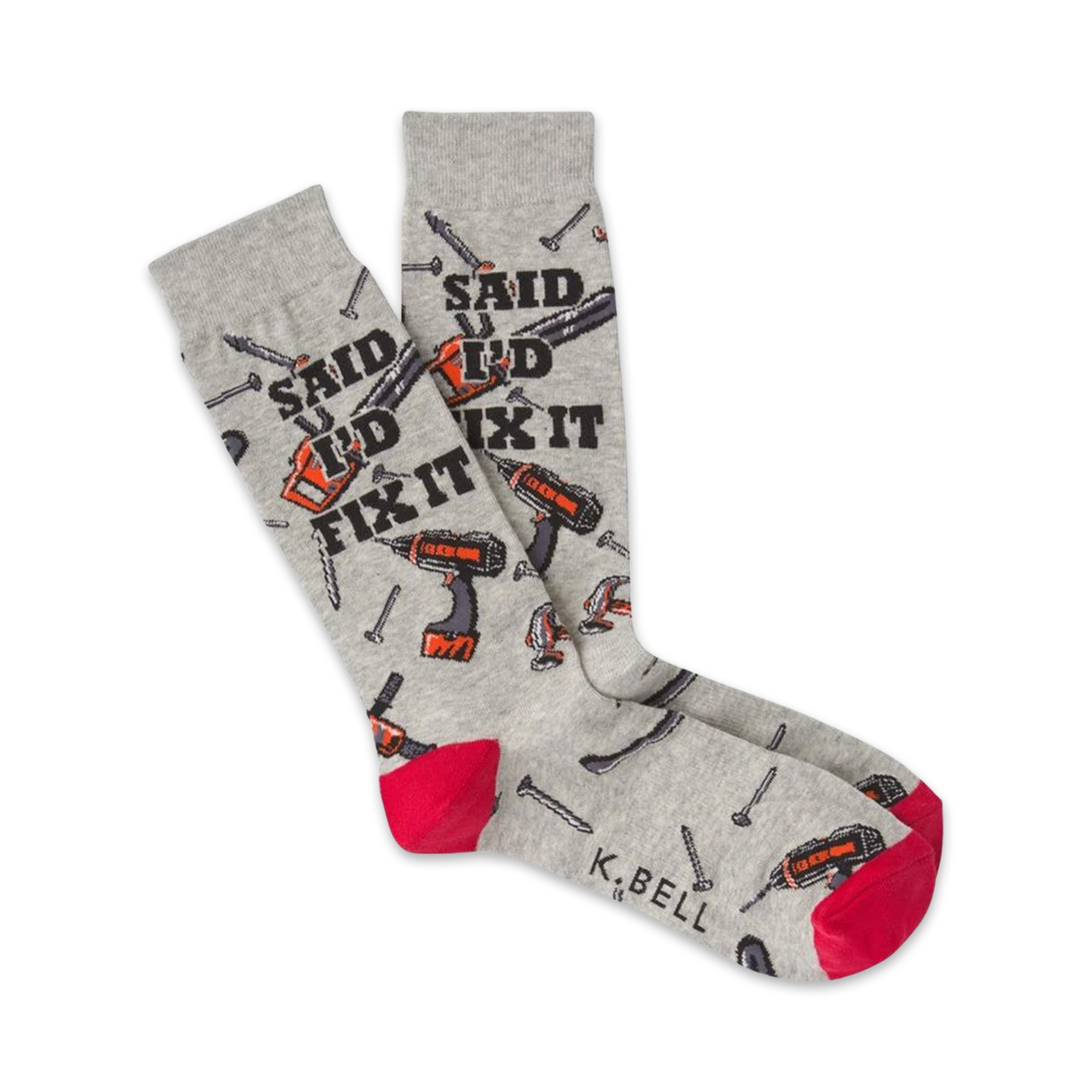 Say goodbye to boring socks and hello to Fix It, the most entertaining crew socks on the market. They’re gray with a contrasting red toe and heel and are adorned with a hilarious pattern of tools and nails, along with the words “SAID I’D FIX IT” boldly displayed on the front. Whether you’re a DIY enthusiast, a handyman, or just someone who loves a good laugh, these socks will bring a smile to your face and put a spring in your step. Grab a pair and become a walking, talking punchline!