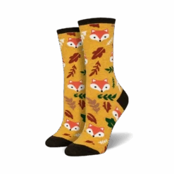Slip into a pair of Foxy Fall Crew Socks and let your feet do the talking. These vibrant yellow socks boast a playful pattern of cartoon foxes frolicking amidst a backdrop of vibrant fall leaves in orange, red, brown, and green. They’re the perfect accessory to add a touch of whimsy and warmth to your everyday style. Plus, who knows, wearing these socks might just bring you a little bit of fox luck!