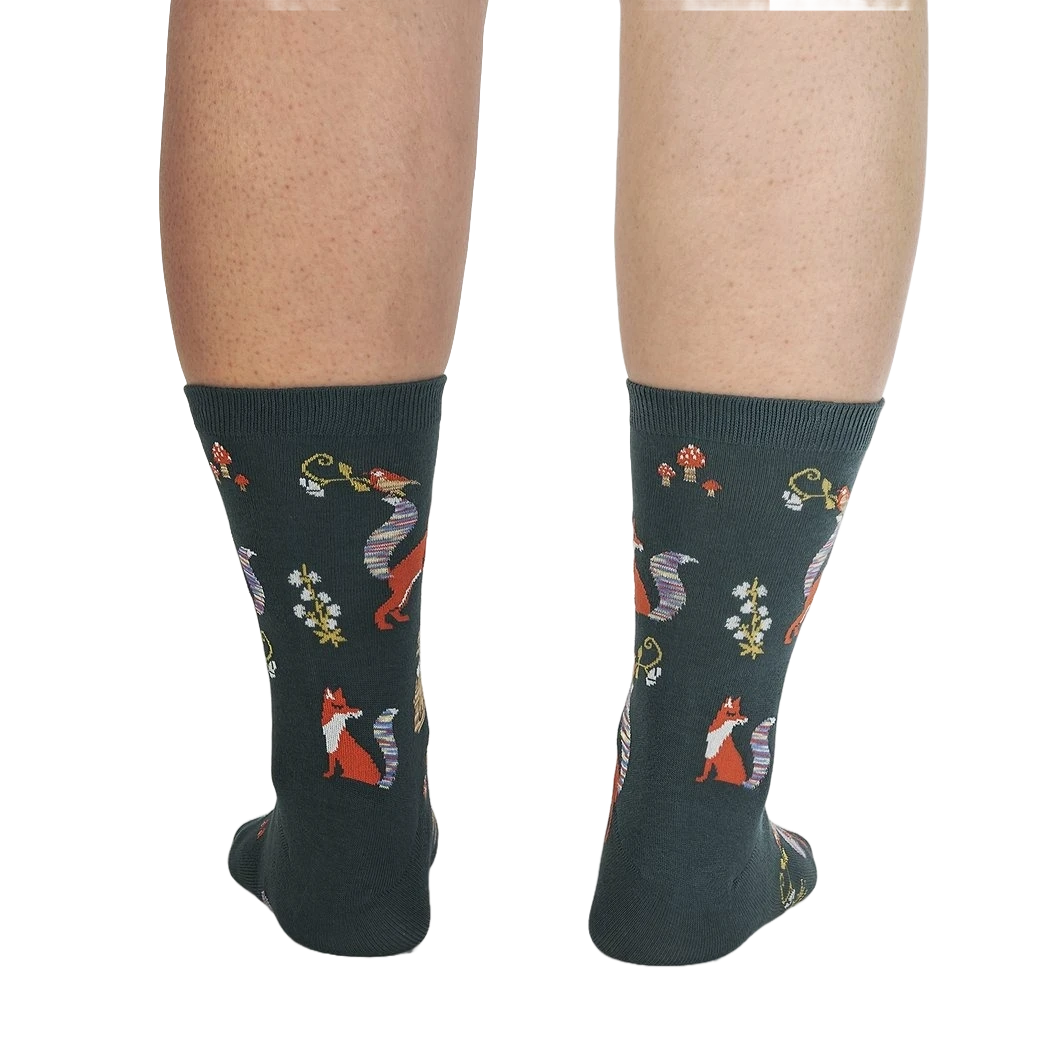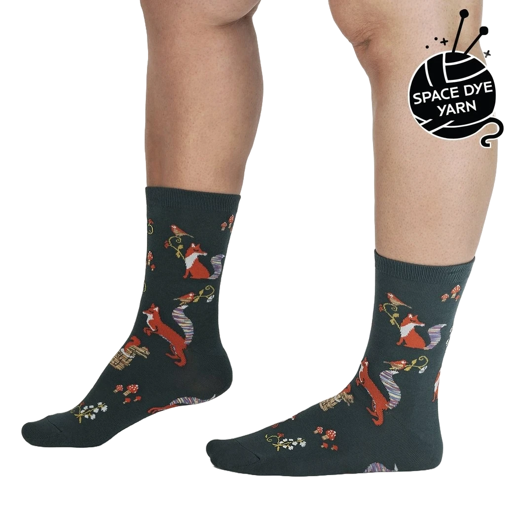 Be all foxed out for Foxy, I Think I Love You socks! These crew length socks feature a woodland wonderland of red, orange, and white foxes frolicking amidst red and white mushrooms, pink, yellow, and blue flora, and blue, yellow, and white birds. Fun fact: Foxes have a unique ability to hear sounds up to 40,000 hertz. That’s five times better than humans!