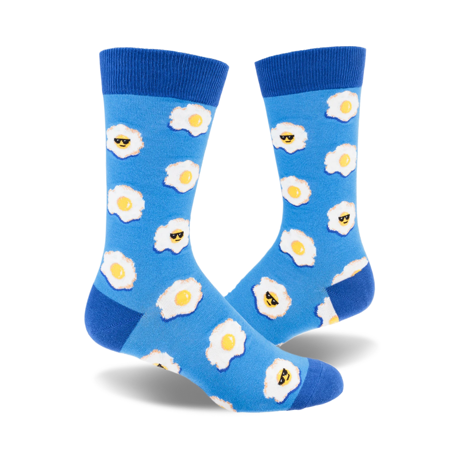 Ever noticed how a sunny-side-up egg can turn a breakfast plate into a masterpiece? Now imagine that same vibe on your feet! These playful socks bring a splash of morning cheer with their vibrant blue backdrop and a delightful pattern of fried eggs, some sporting sunglasses and cheeky smiles. Perfectly fried and full of personality, these socks are your go-to for a bright and sunny day, no matter the weather outside.