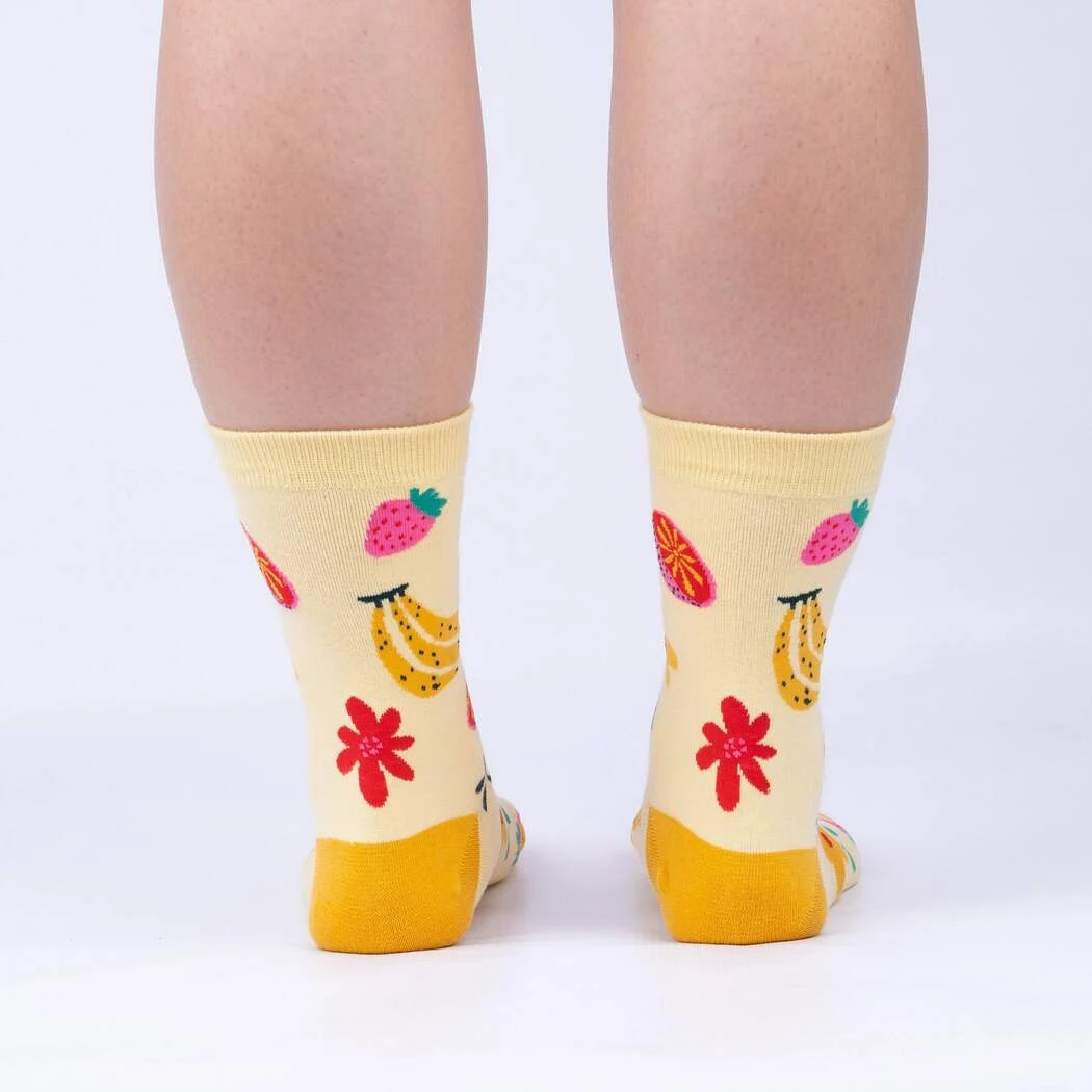 These Fruity Bloom crew socks are bursting with sweet, juicy style! Picture this: strawberries, bananas, cherries, and pretty flowers, all dancing across your feet in bright, cheerful colors. Strut your stuff in these fruity socks and watch smiles bloom wherever you go. Remember, life’s like a fruit basket-full of surprises, just like these socks!
