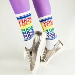 You’ve got the Shit Happens bumper sticker on your car. Now all you need are a pair of cheeky socks to match your outlook of life. Tell everyone who has ever screwed you over how you feel about them when you slip on a pair of these funny, outrageous socks. Each cool pair of women’s novelty socks features the words FUCK on one side and YOU on the other. The words come in colors resembling a rainbow and there are happy faces printed next to them.