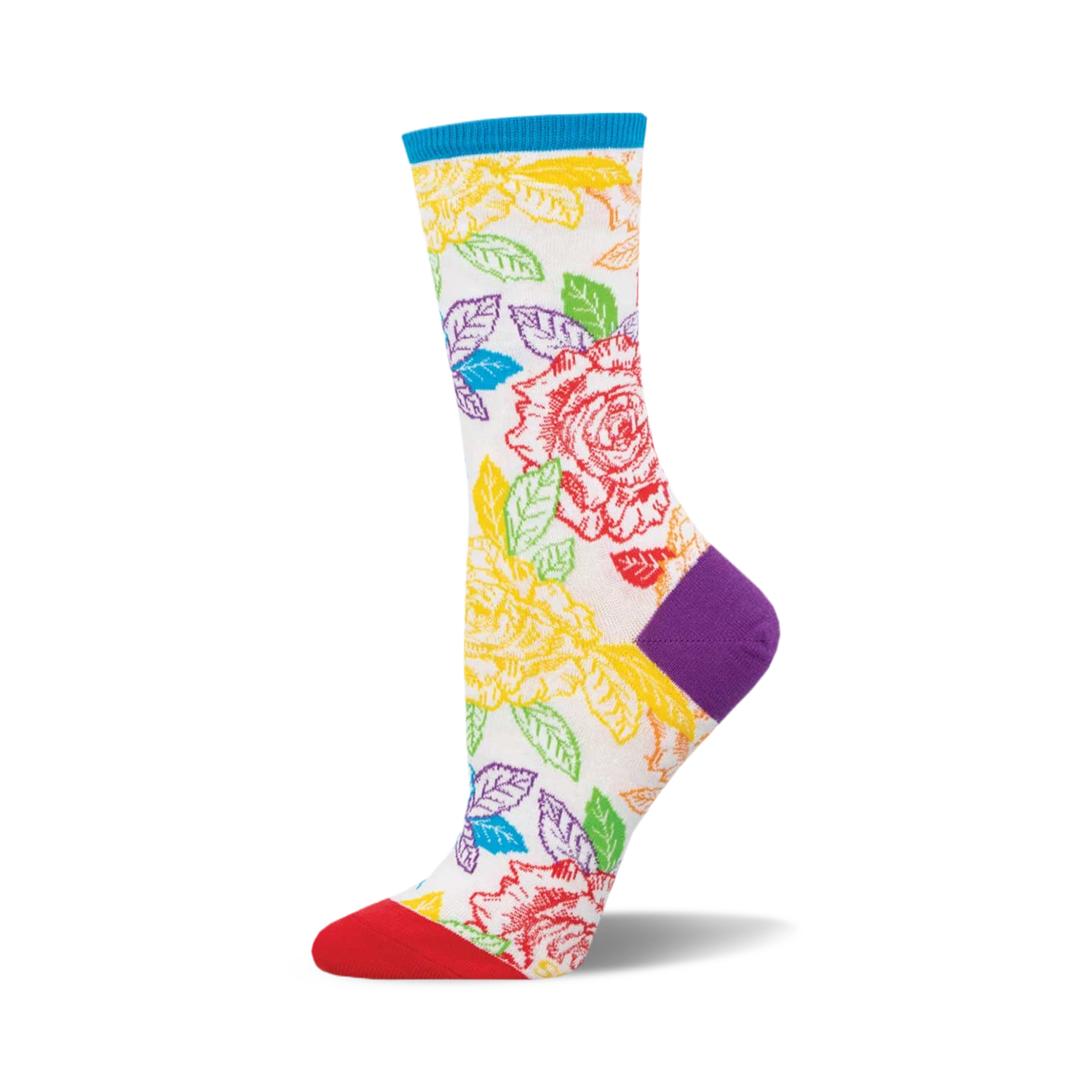 Imagine twirling through your day with a burst of color at your feet! Gay Roses socks are a vivid tapestry of roses and leaves, dancing in a spectrum from fiery red to bold purple against a clean white backdrop. Whether you’re jazzing up a Monday morning or adding a splash to your weekend wear, these socks bring a pop of fun and a dash of sass wherever you go. Hosting a garden party? Strut around flaunting your florals! Lounging at home? Cozy up in style! Why blend in when you were born to stand out? Grab a pair, and let your feet do the talking!
