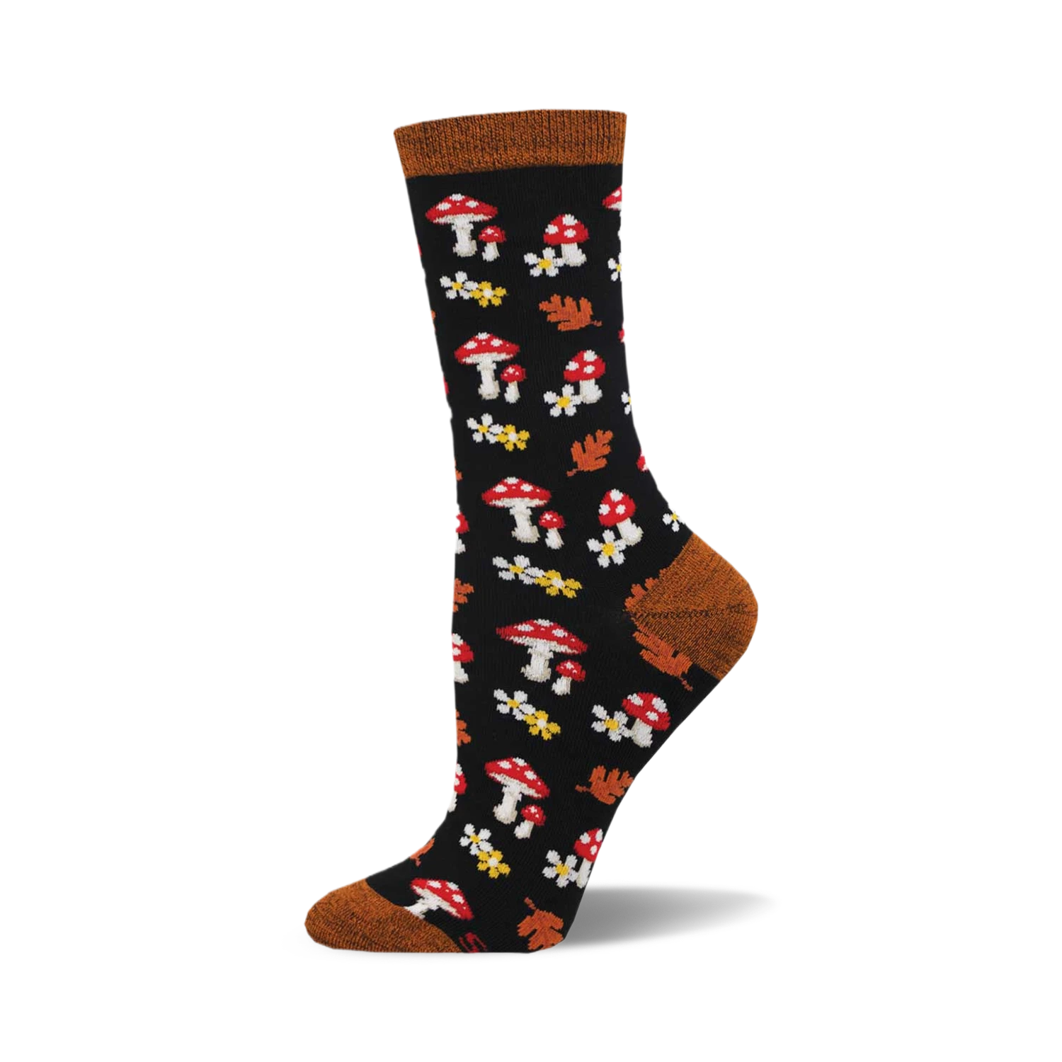 Crafted from bamboo, these socks are as soft on your feet as they are on the environment. Decked out in midnight black with earthy brown accents, they showcase a whimsical pattern of red toadstool mushrooms, turning each step into a miniature woodland adventure. Perfect for those who appreciate a hint of forest magic in their daily wanderings. Whether you’re lounging or lunging, these socks are your silent partners in crime, whispering tales of enchantment from beneath the cuff of your jeans. They’re not just socks; they’re a covert escape to a moss-covered, fairy-tale world.