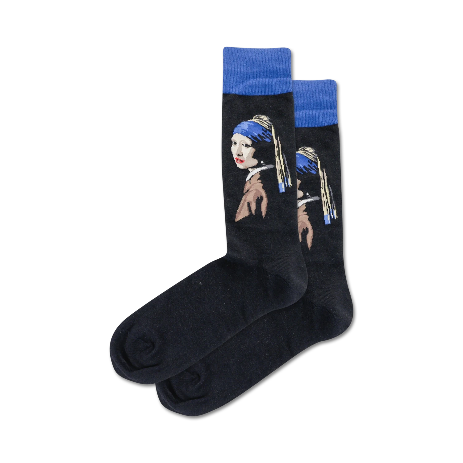 These Girl with a Pearl Earring socks are a work of art! With their classic black background and stunning depiction of Vermeer’s masterpiece, they’ll elevate your sock game to new heights. The intricate details, from the girl’s enigmatic smile to the shimmering pearl, will have you feeling like a true connoisseur every time you slip them on. Trust us, these socks are so much more than just a fashion statement – they’re a conversation starter, a history lesson, and an expression of your inner Rembrandt, all rolled into one. And who knows, they might even inspire you to create your own masterpiece!