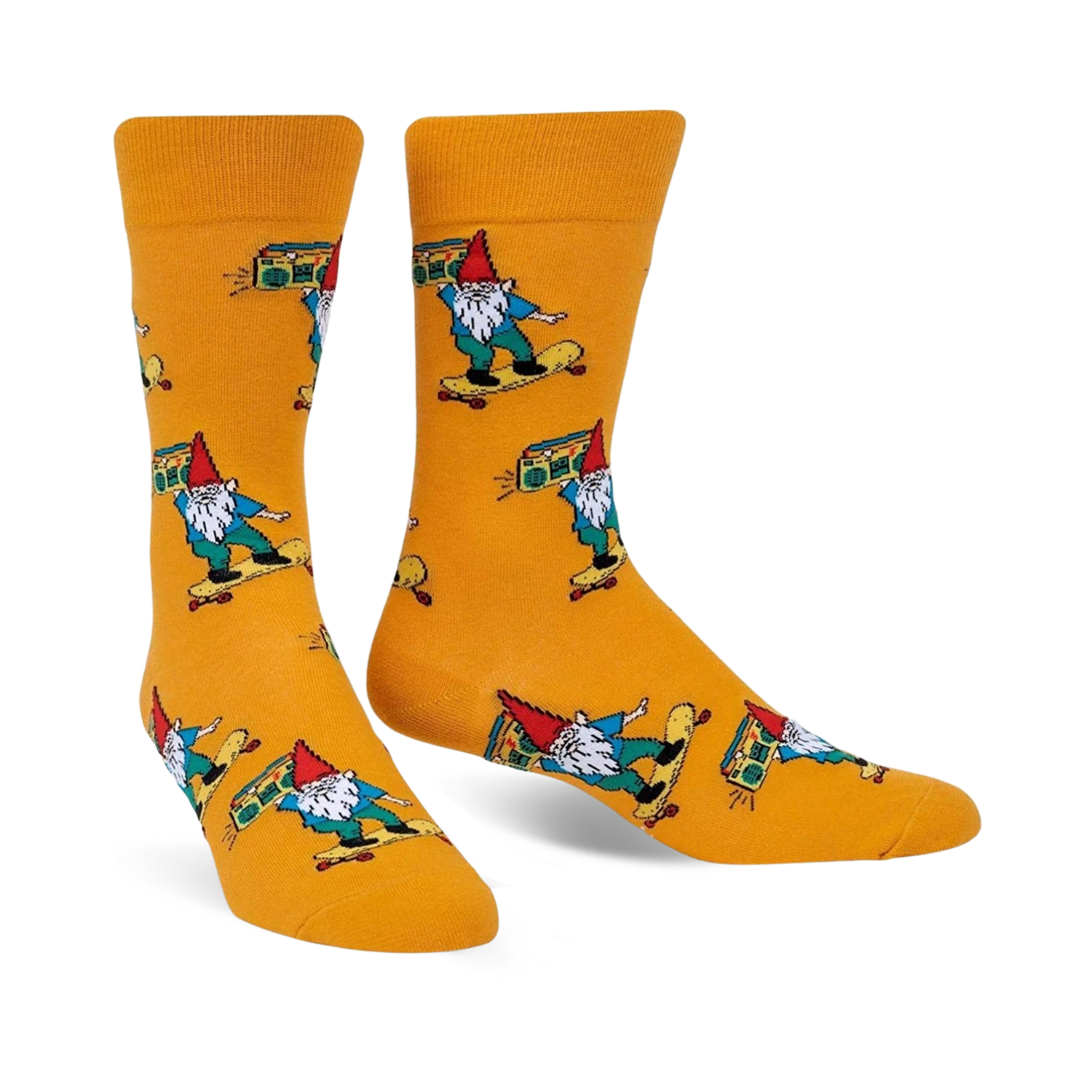 Gnarly Gnomes Socks: The perfect socks for the gnarliest of gnomes! These crew length socks feature a pattern of cartoon gnomes skateboarding, complete with red and blue hats, green shirts, and yellow skateboards. They’re the perfect way to add a touch of fun and whimsy to your outfit, and they’re sure to make you smile every time you put them on. Plus, they make great gifts for any gnome-lover in your life. And here’s a fun fact: Did you know that gnomes are sometimes associated with good luck and prosperity? So, by wearing these socks, you’re not only expressing your personal style, but you might also be attracting some good fortune.