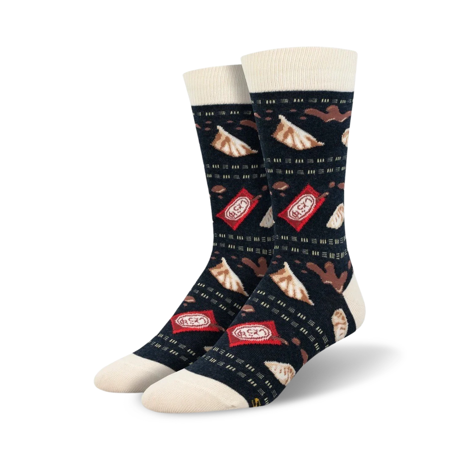 Gyoza, gyoza, how do you pleat? A question only these fun socks can answer. Go on, show these dumplings just how much you love them by wrapping your feet in their scrumptiousness. Available in a crew length with a black base and an all-over print of everyone’s favorite Japanese treat.