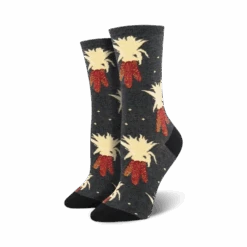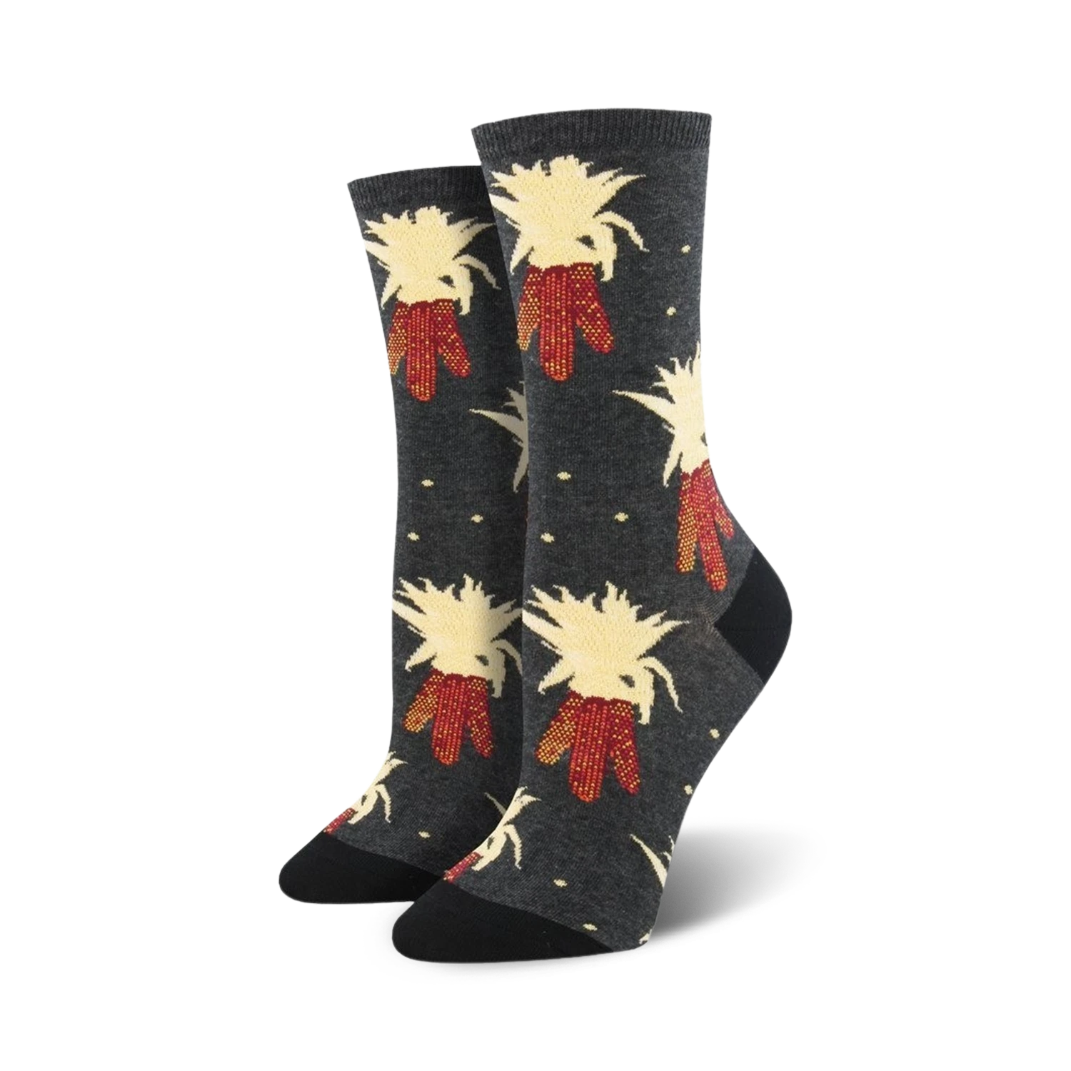 Feast your toes on Harvest Corn Crew Socks! These tasty socks are sure to make a “stalk”-ment whether you’re cooking up a Thanksgiving feast or just craving some corny humor. With a dark gray background and vibrant red and yellow corn, you’ll be serving up style wherever you go. And the best part? They’re like your favorite casserole: amazing, but good for you too! Women’s crew socks with a Thanksgiving theme.