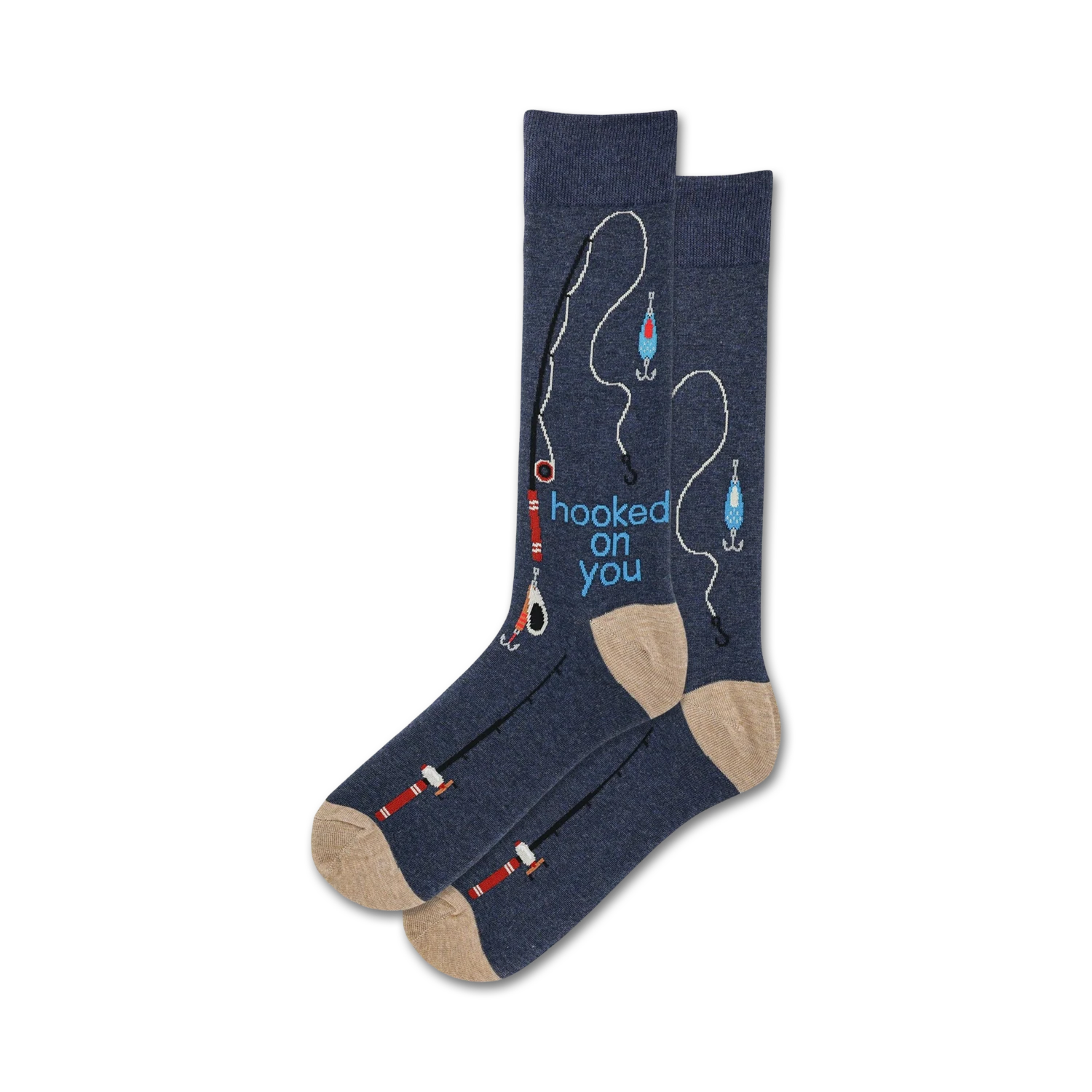 Show your love for fishing with these fun and quirky “Hooked On You” socks! Whether you’re reeling in the big one or just casting a line, these dark blue crew socks are sure to make a splash. The playful pattern features fish hooks, fishing lines, and lures, while the embroidered words “Hooked On You” add a touch of whimsy. These socks are perfect for the angler in your life who loves to fish or anyone who appreciates a good pun.