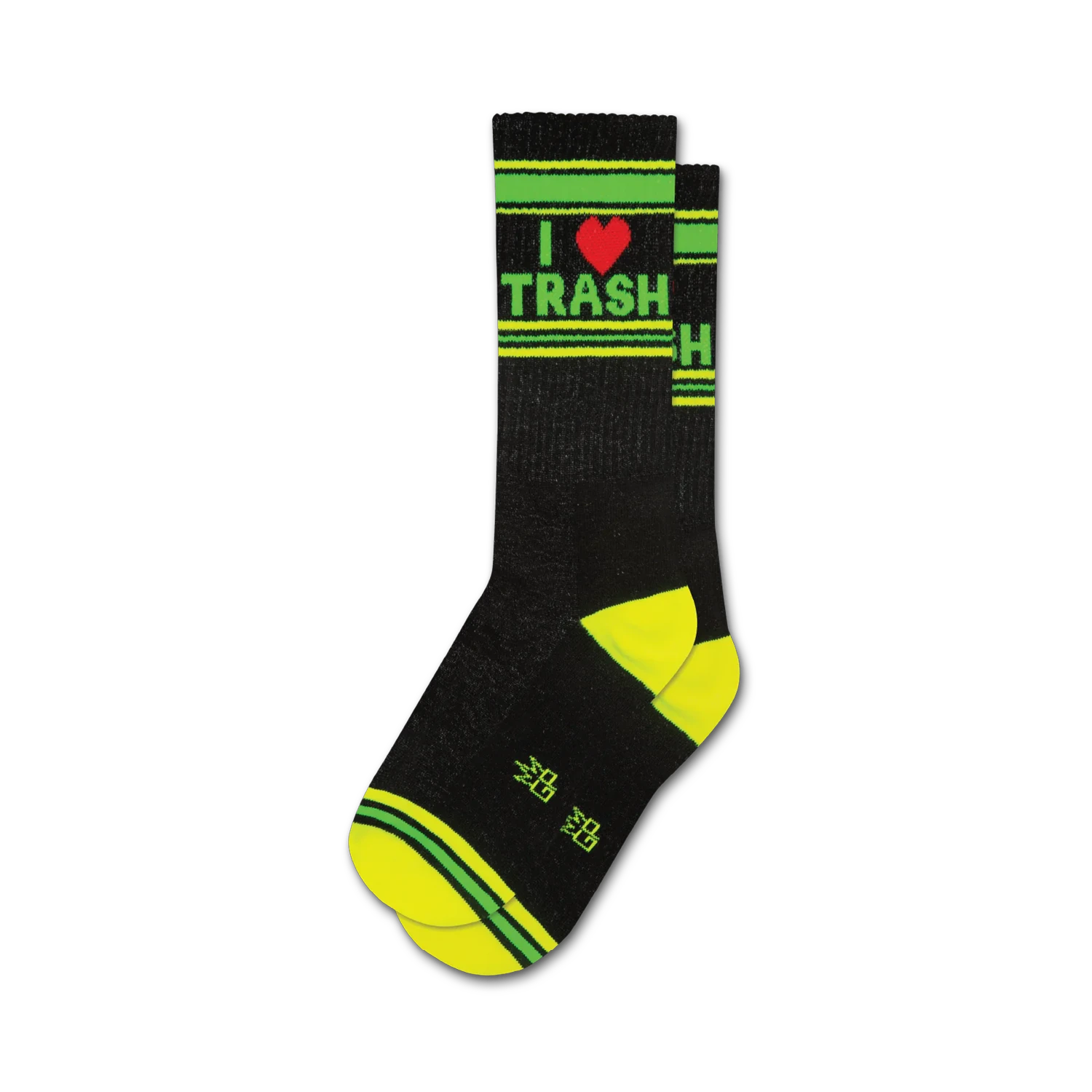 You know what’s better than a pair of socks? I <3 Trash socks! These black socks are covered in trash talk. “I Love Trash” is written on the leg, heel, toe, and even the sole! The neon yellow and green highlights make this trash extra sassy!