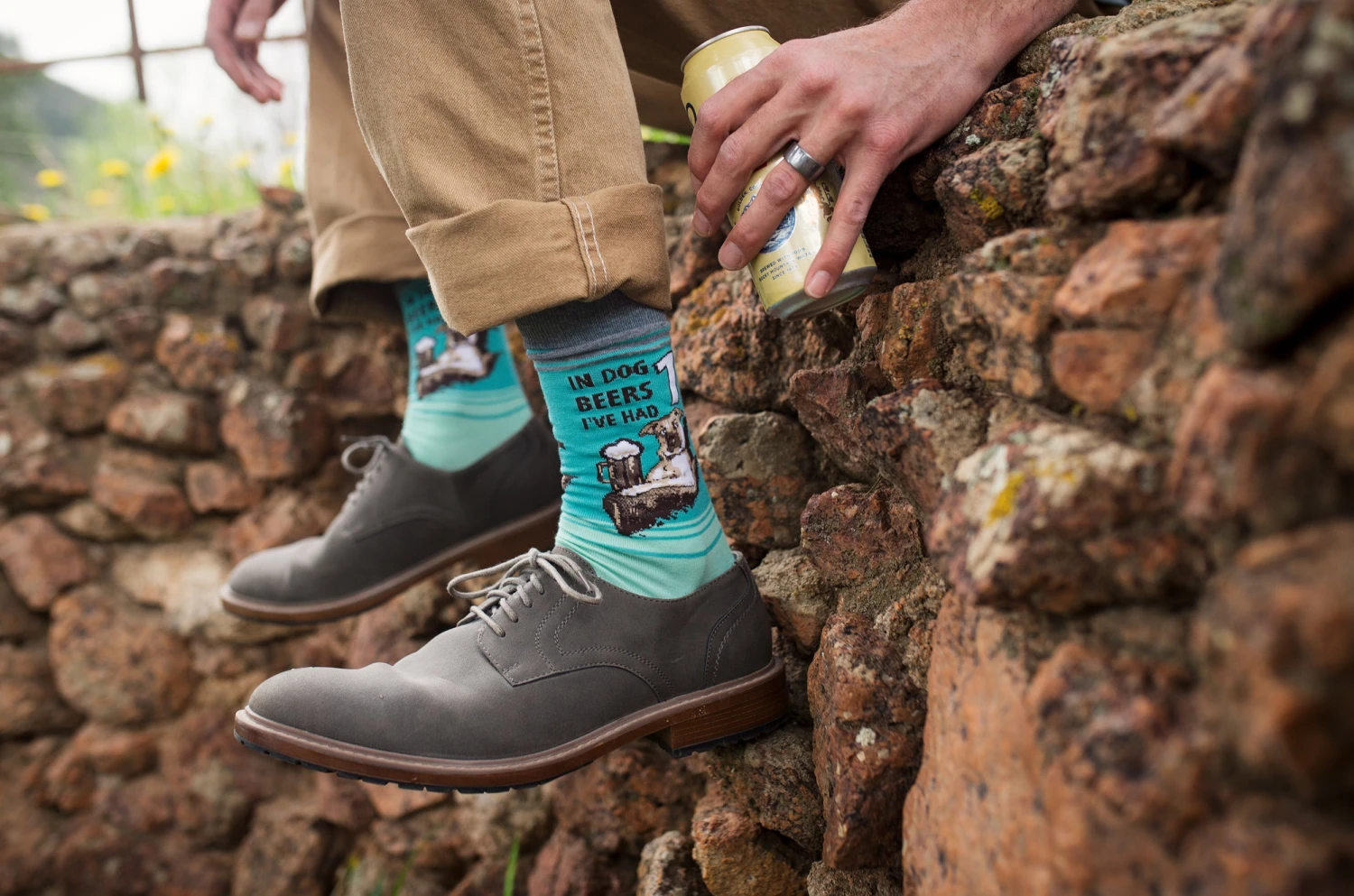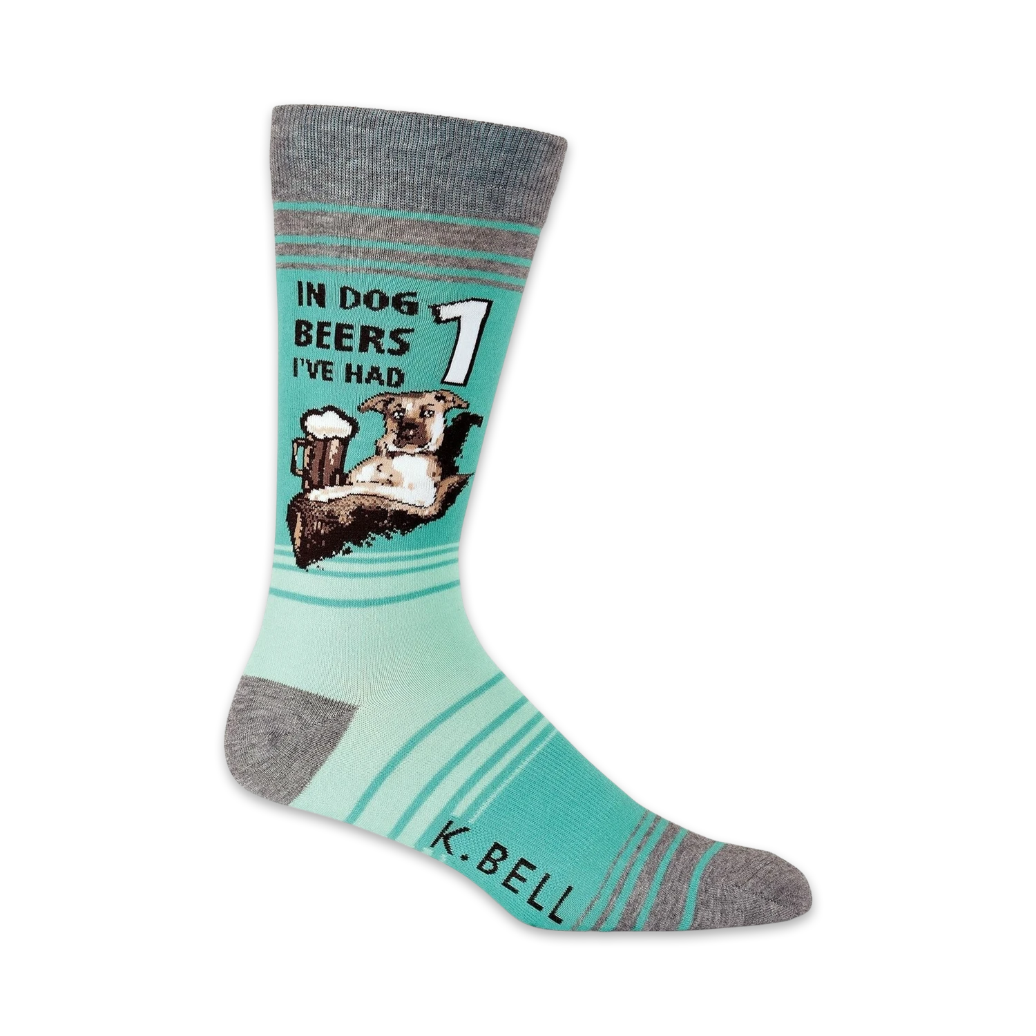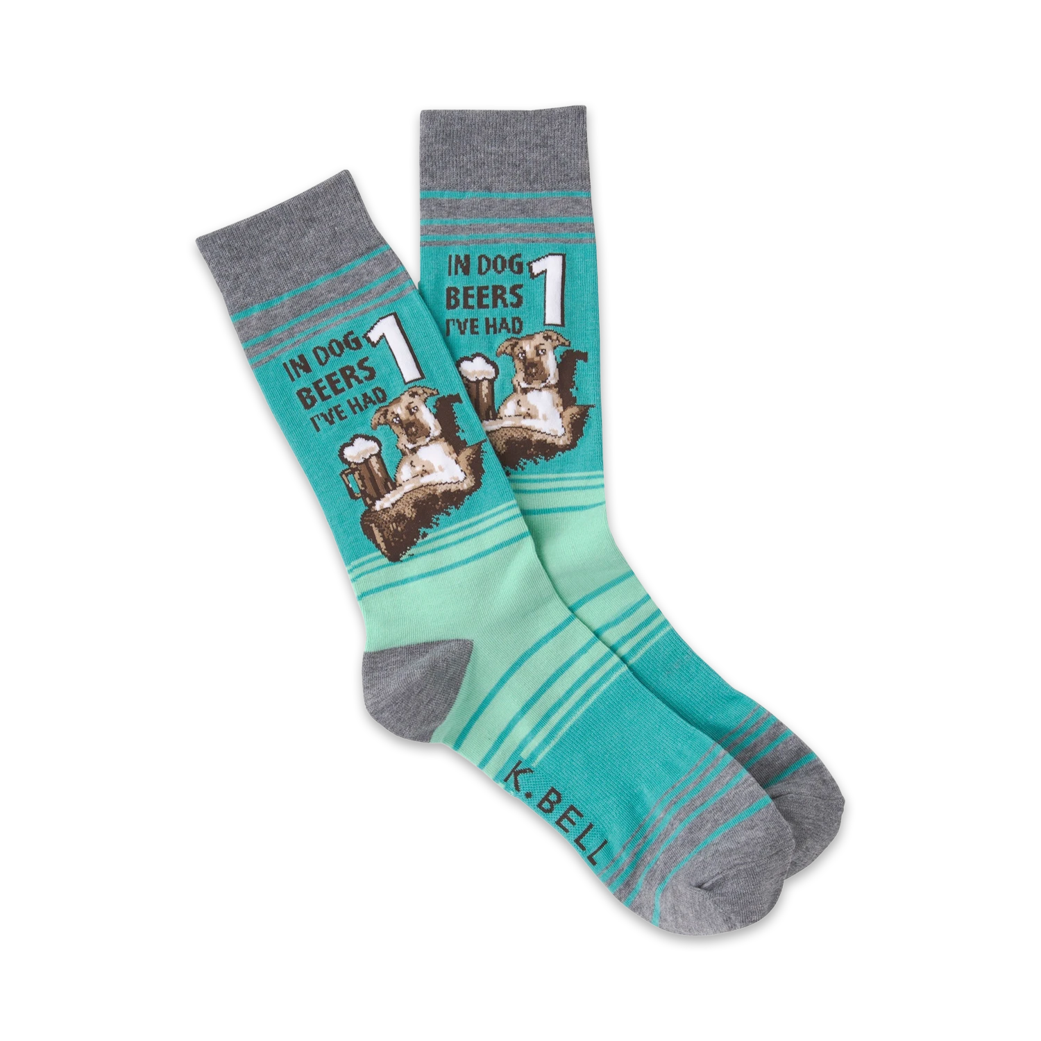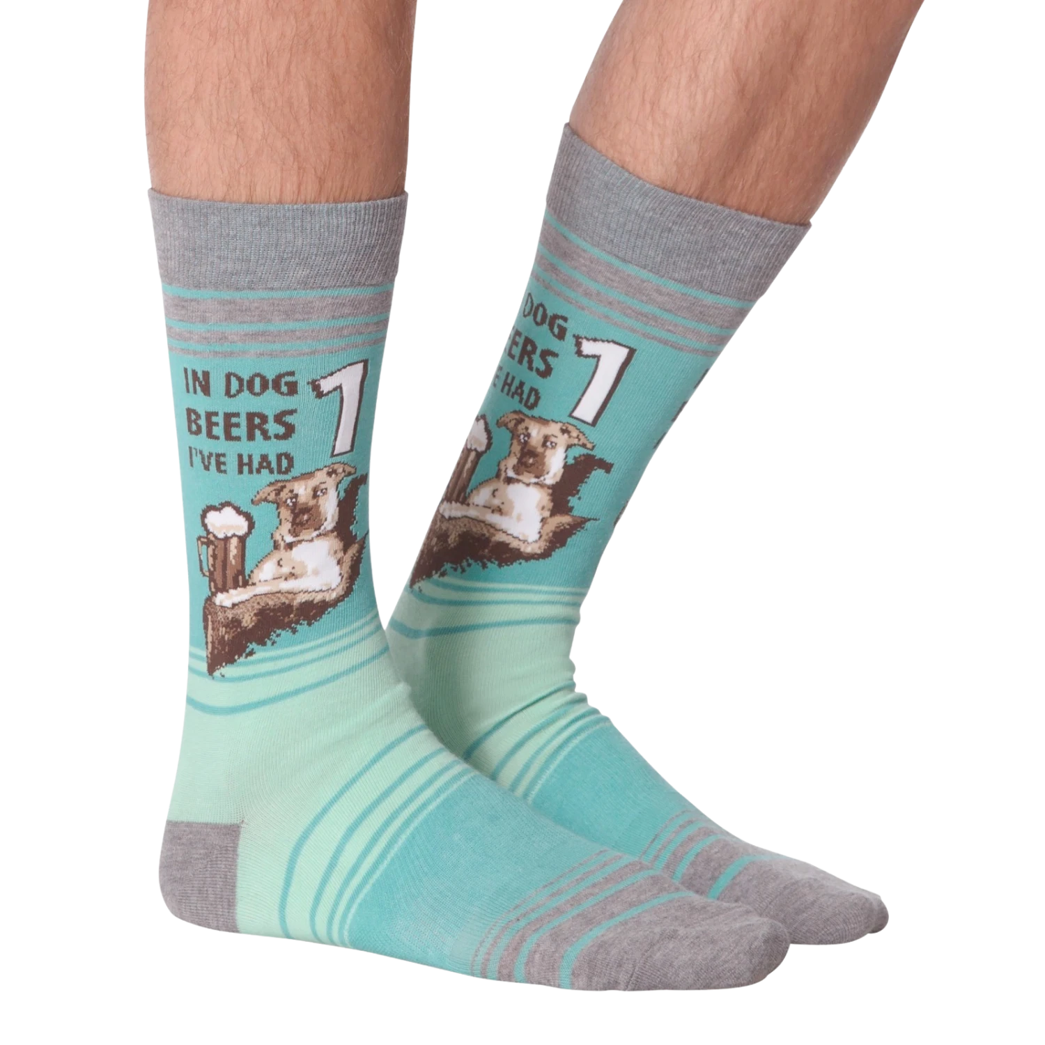 Everyone always confuses dog years with human years. All we know is that less means more when it comes to a man’s best friend! These funny socks feature a graphic dog enjoying a nice cold brew. Above him reads “In dog beers I’ve had 1”. These cool socks make a wonderful edition to any beer lover’s sock collection.