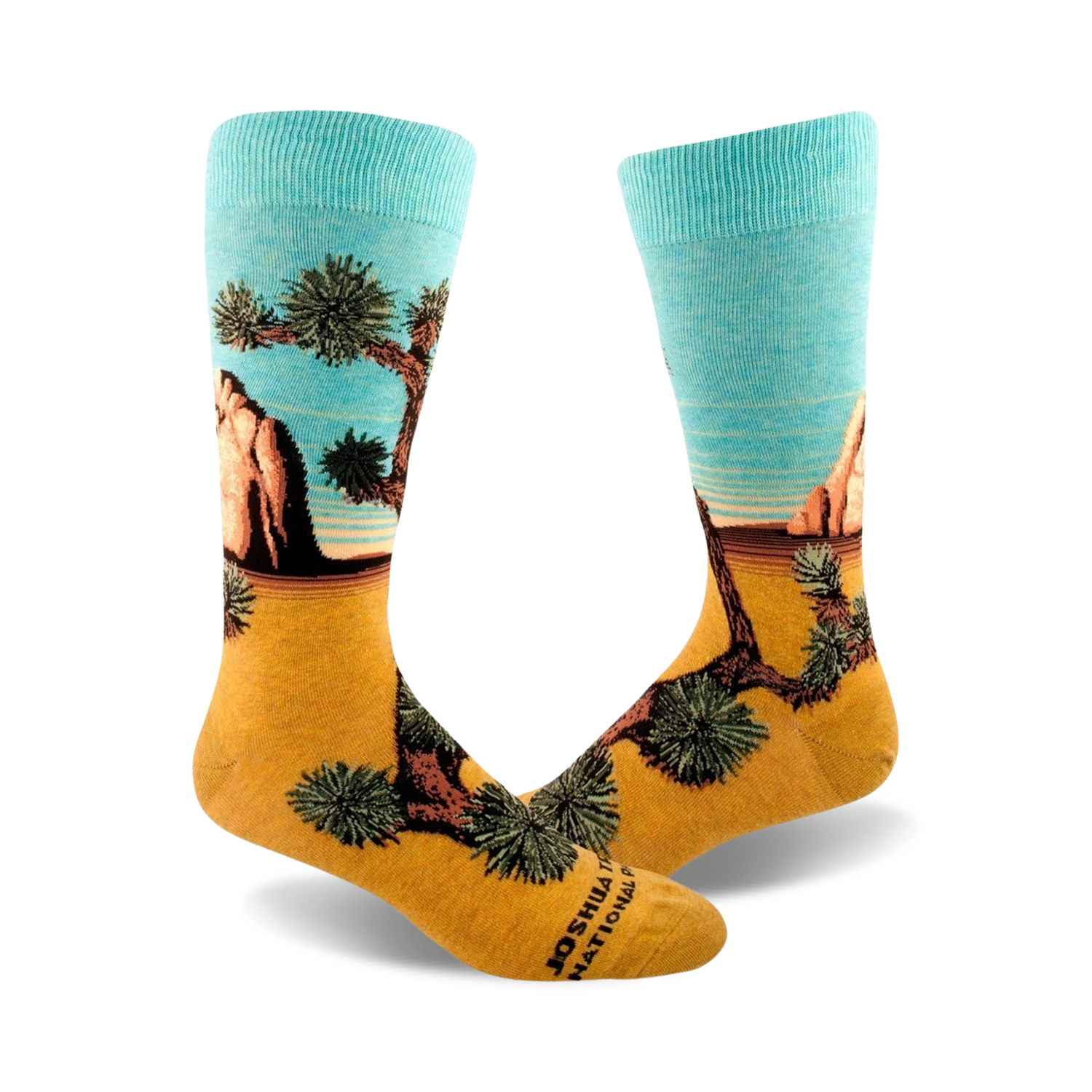 Joshua Tree Socks: These desert-inspired socks are the perfect accessory for any adventure-loving soul. Featuring a vibrant pattern of Joshua trees, rocks, and cacti, these socks will take you on a journey through the wild west. Show off your love for the great outdoors with these eye-catching, fun socks.