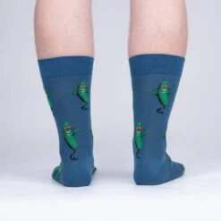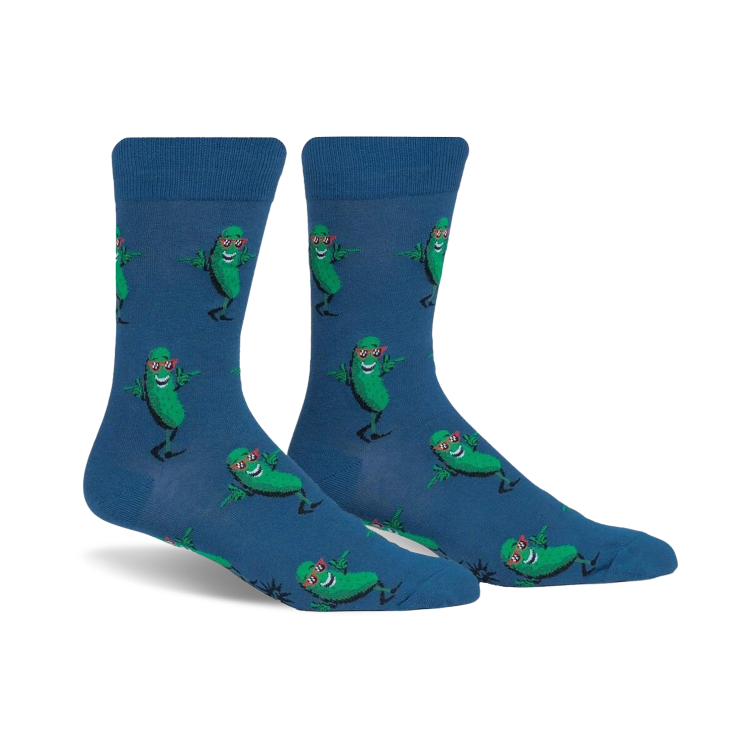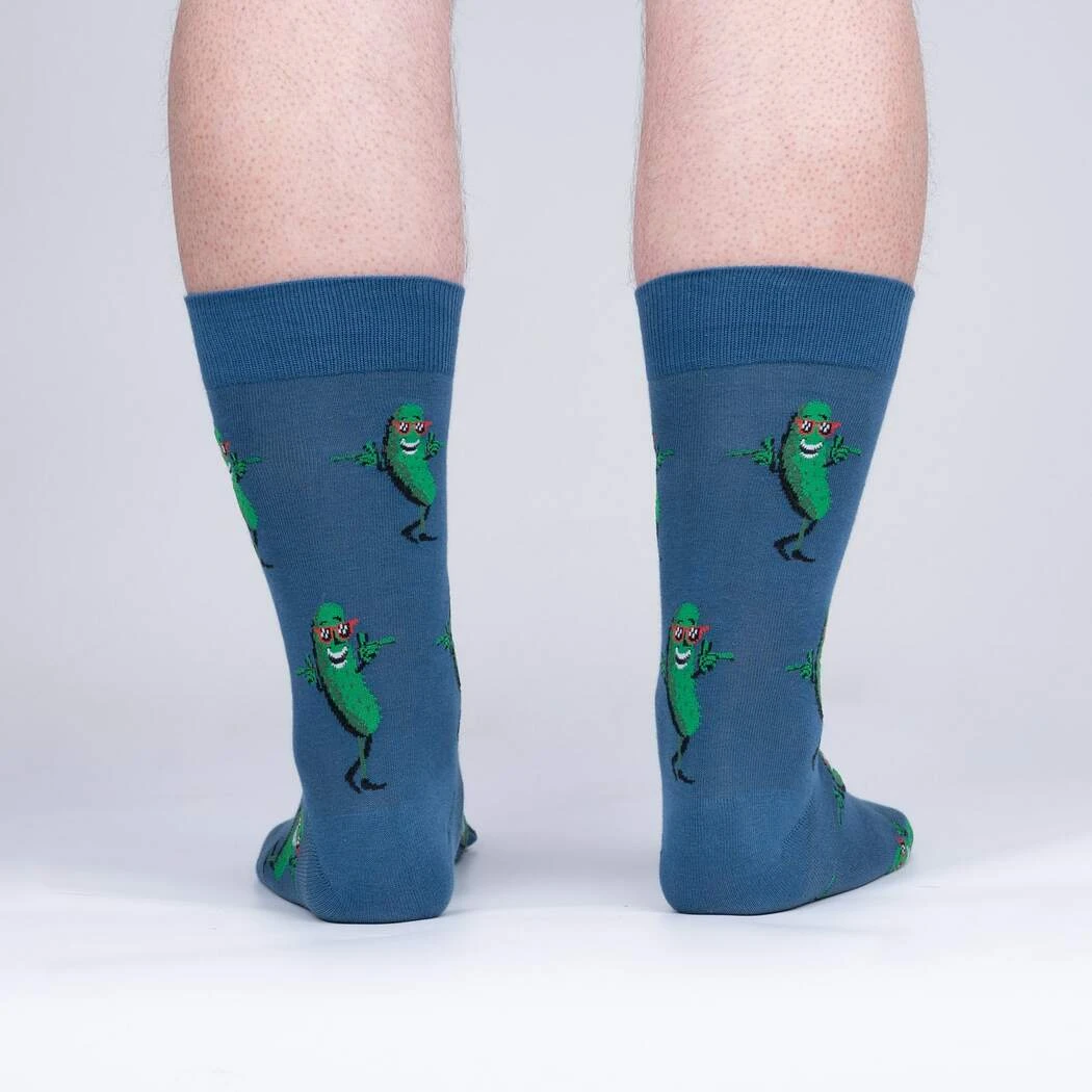 Calling all pickle-lovers! Our Kind of a Big Dill socks are here to add a dash of fun to your footwear. Picture this: a crew length sock, drenched in an all-over print of cartoon pickles. These pickles aren’t just ordinary veggies; they’re rockin’ shades, arms, and legs, ready to take over your sock drawer. Slip on a pair, and let these cool cukes become your new go-to accessory, perfect for adding a pop of personality to any outfit. It’s time to embrace your inner pickle-thusiast and show the world your fresh and funky style.