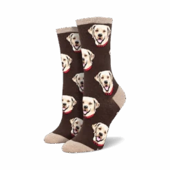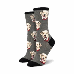 Calling all dog lovers! Show your Labrador obsession with these crazy crew socks! These socks are the perfect way to get a smile from fellow canine lovers. With gray cotton and a vibrant pattern of Labrador heads in different poses, these socks have a black toe and heel. Be sure to wear them to your next dog park visit to see who notices first! Stay paw-some and protect your feet while you’re at it!