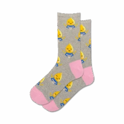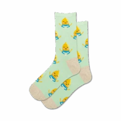 Pucker up and prepare to be puckled with glee because these socks are lemon zest-y! Picture a garden party in your feet, where gray socks play host to a group of meditating lemons, their yellow bodies and blue eyes exuding inner peace. Join the lemon circle and let the day’s stresses melt away like sorbet on a hot summer day. Be warned: these socks may inspire you to start a lemon-aid stand, teach yoga, or write haiku about citrus. Get ready to add a twist of fun to your sock drawer and pucker up for some serious style.