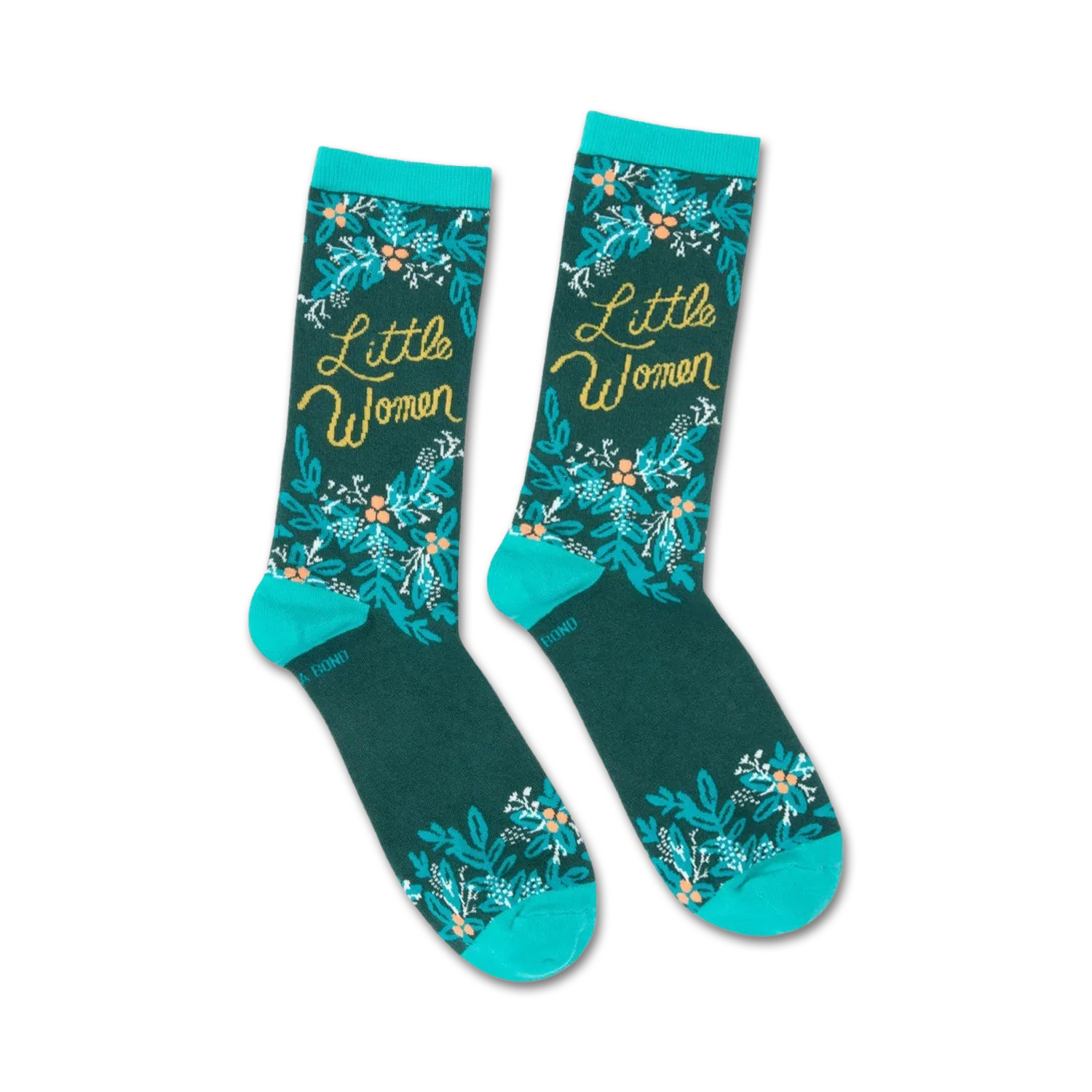 Even Little Women need something cozy and flowery to tuck their feet into! These comfy and colorful socks feature an all-over pattern of small floral bouquets. Each bouquet is unique, with petals in various shades of mint green, dark blue, and gold, set against a dark teal background. Unfortunately, the socks won’t make you a better author like the famous literary characters, but they might inspire your creativity next time your tootsies need a little break from writing!